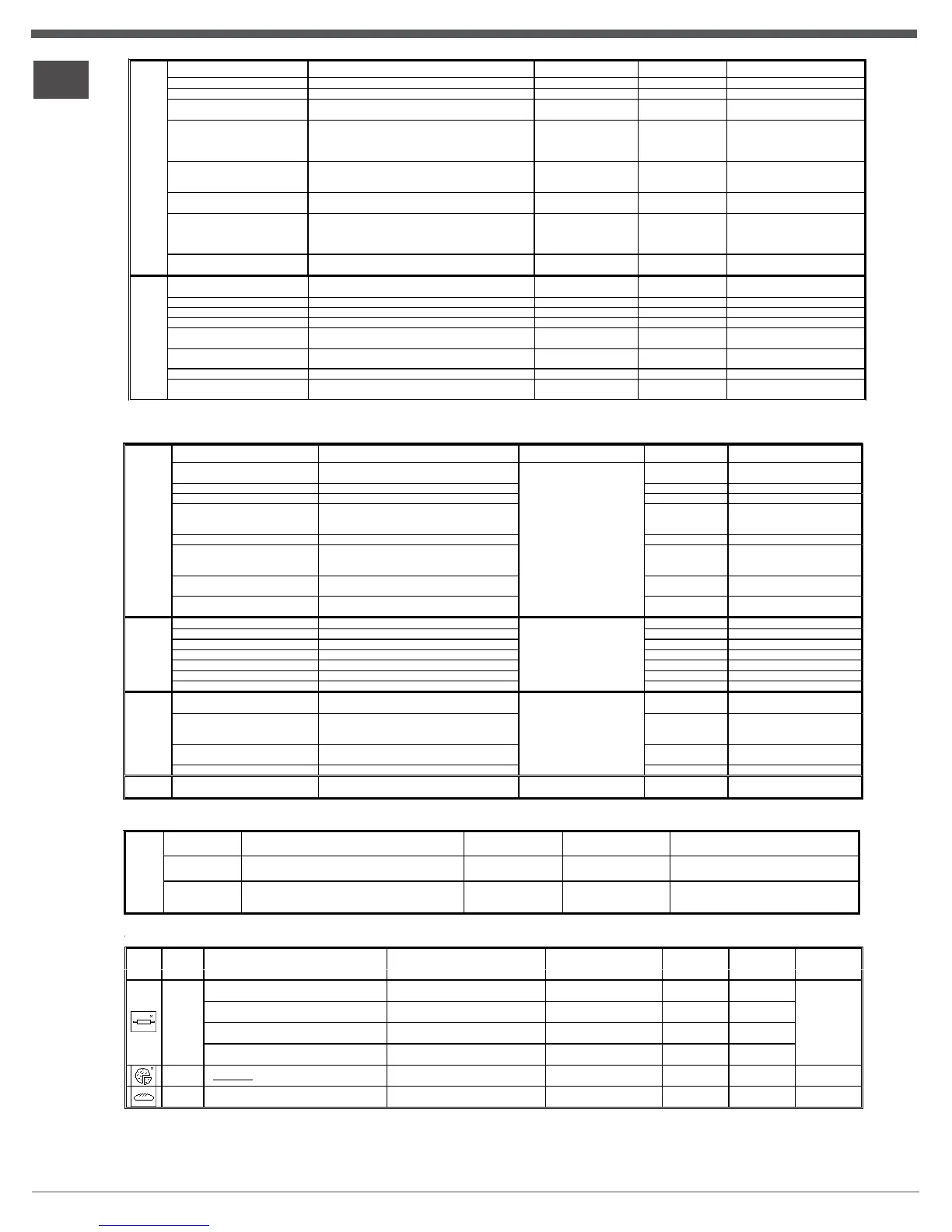 ** The duration of the automatic cooking functions are set by default. The values in the table refer to the minimum and maximum duration, which may be modified by the user, taking the