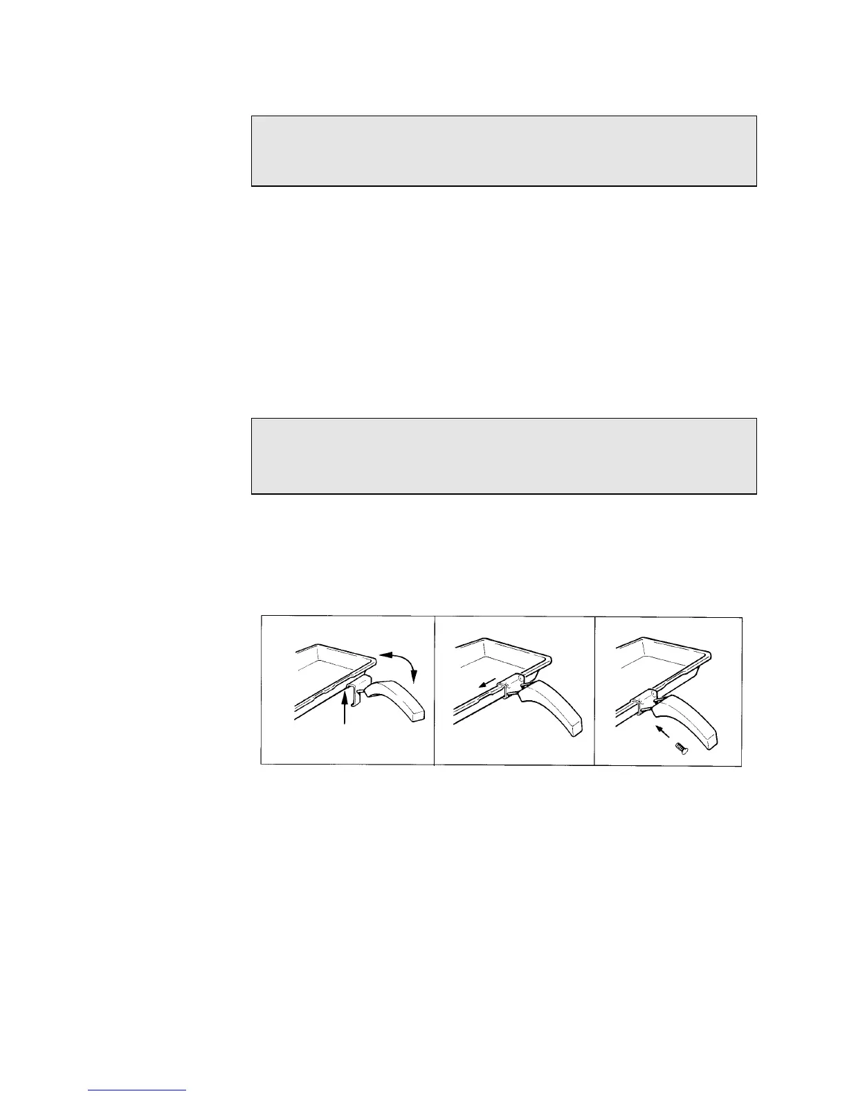 ● Fix the grill pan handle securely in position. See below.