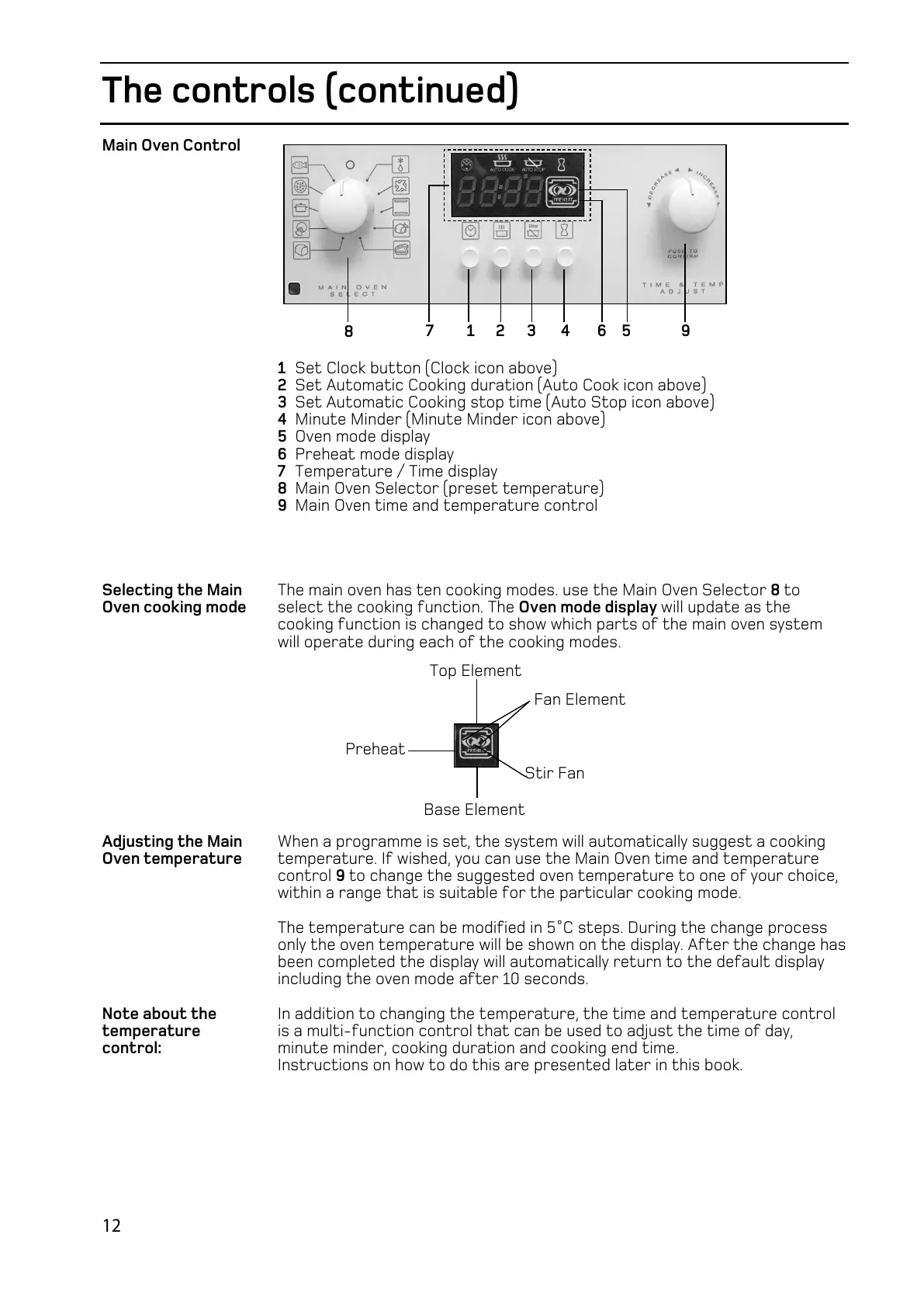 9 Main Oven time and temperature control