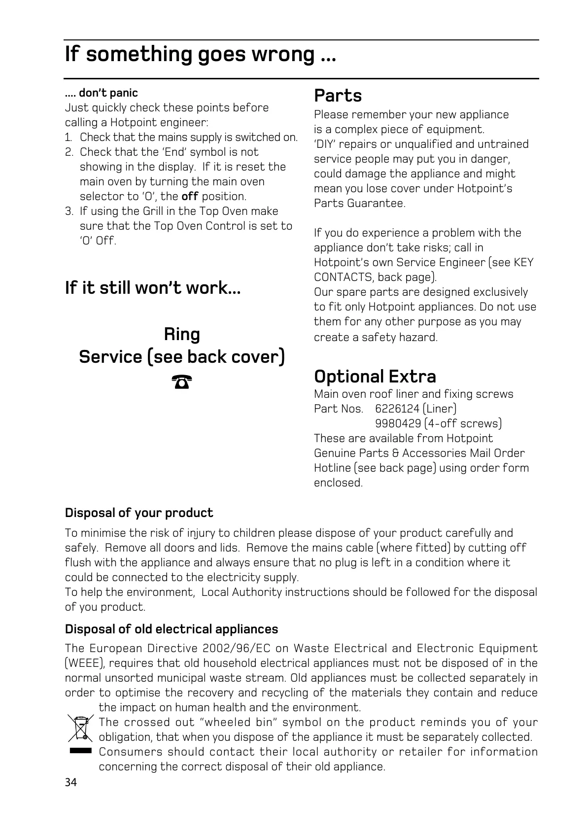 (WEEE), requires that old household electrical appliances must not be disposed of in the
