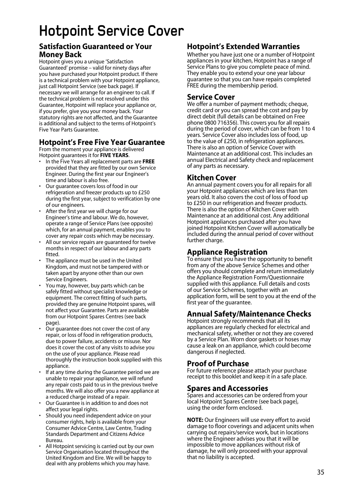 Hotpoint Service Cover