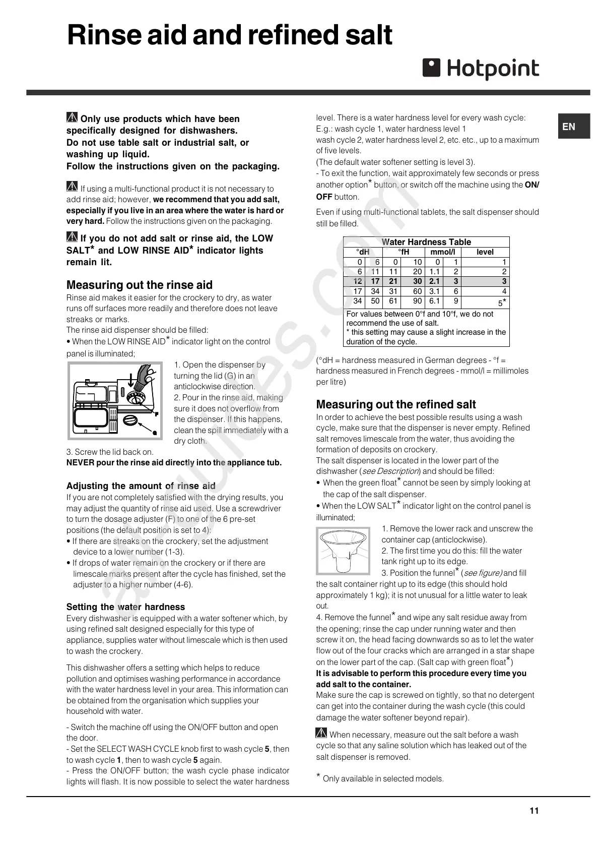 (°dH = hardness measured in German degrees - °f =