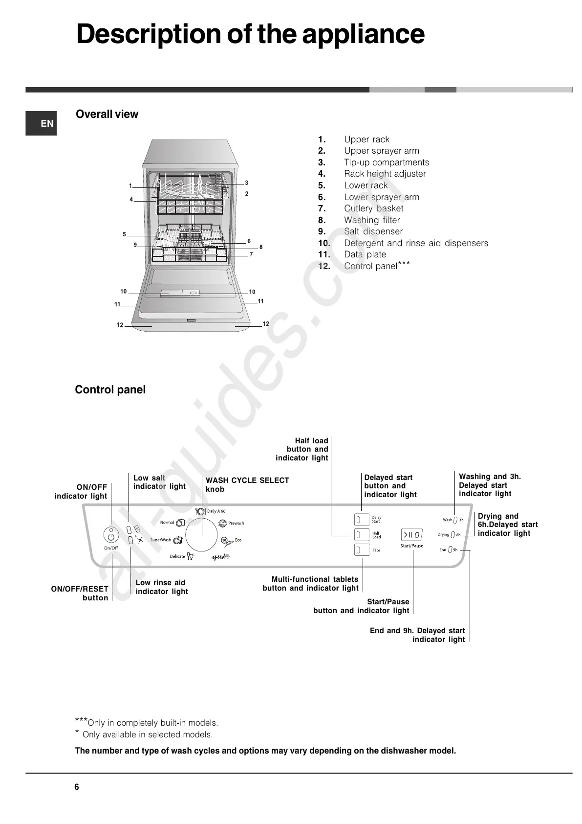 The number and type of wash cycles and options may vary depending on the dishwasher model.