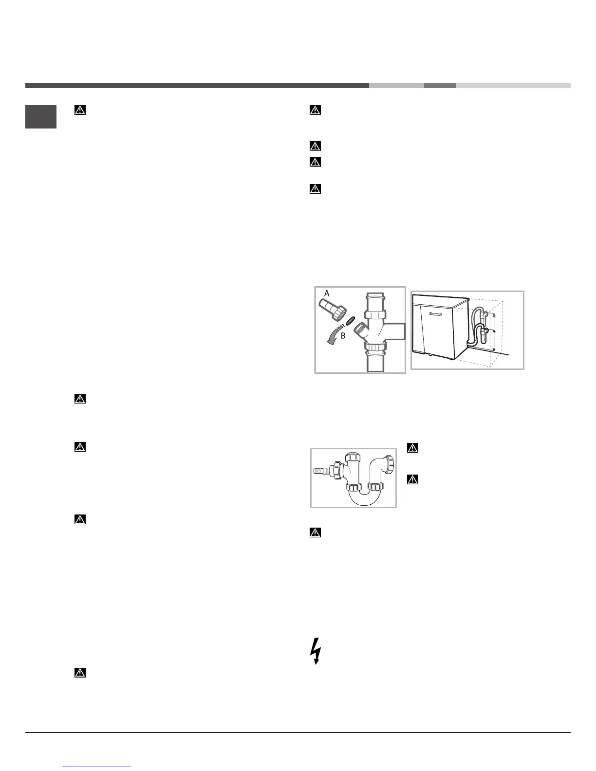 Under no circumstances should the water inlet hose be cut