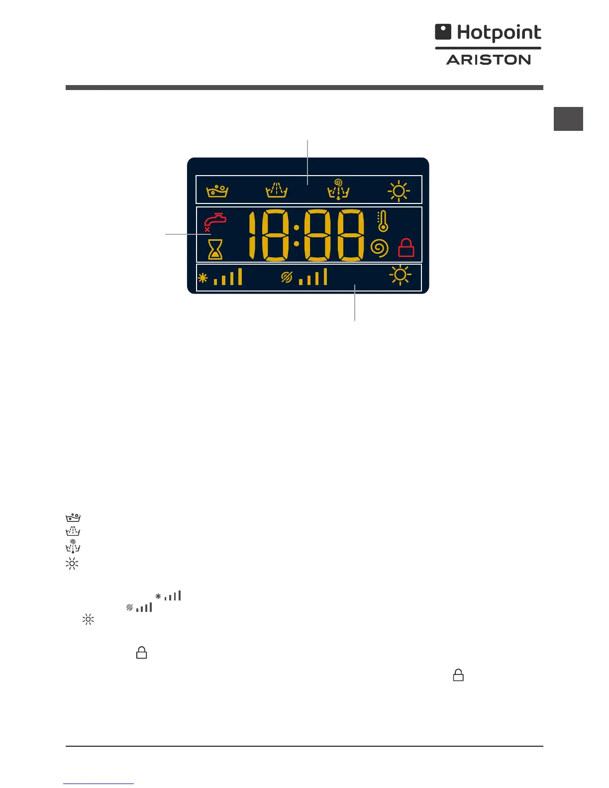 The icons corresponding to “temperature”, “spin” and “drying” (working from the left) are displayed in section C.