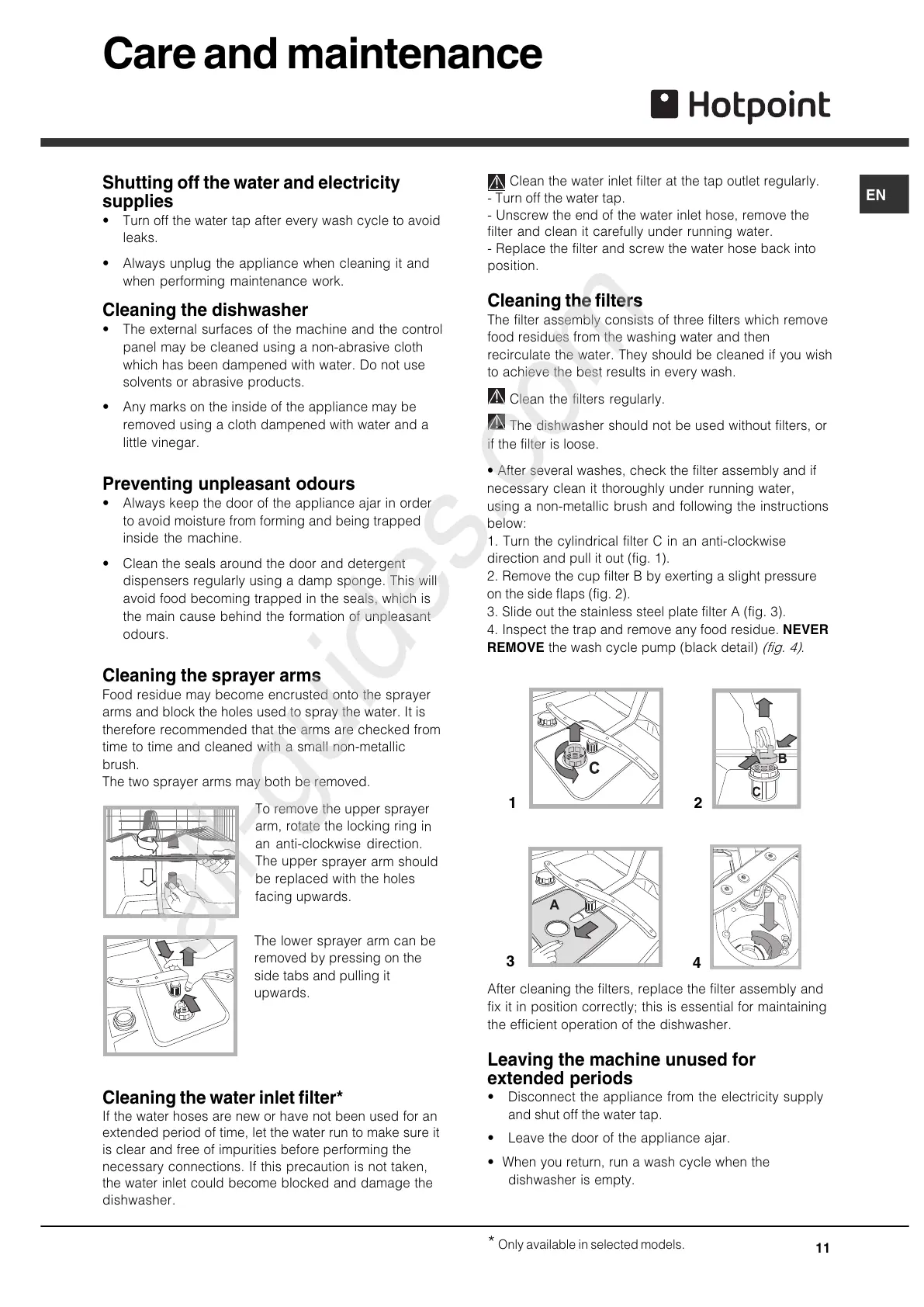 Cleaning the water inlet filter*