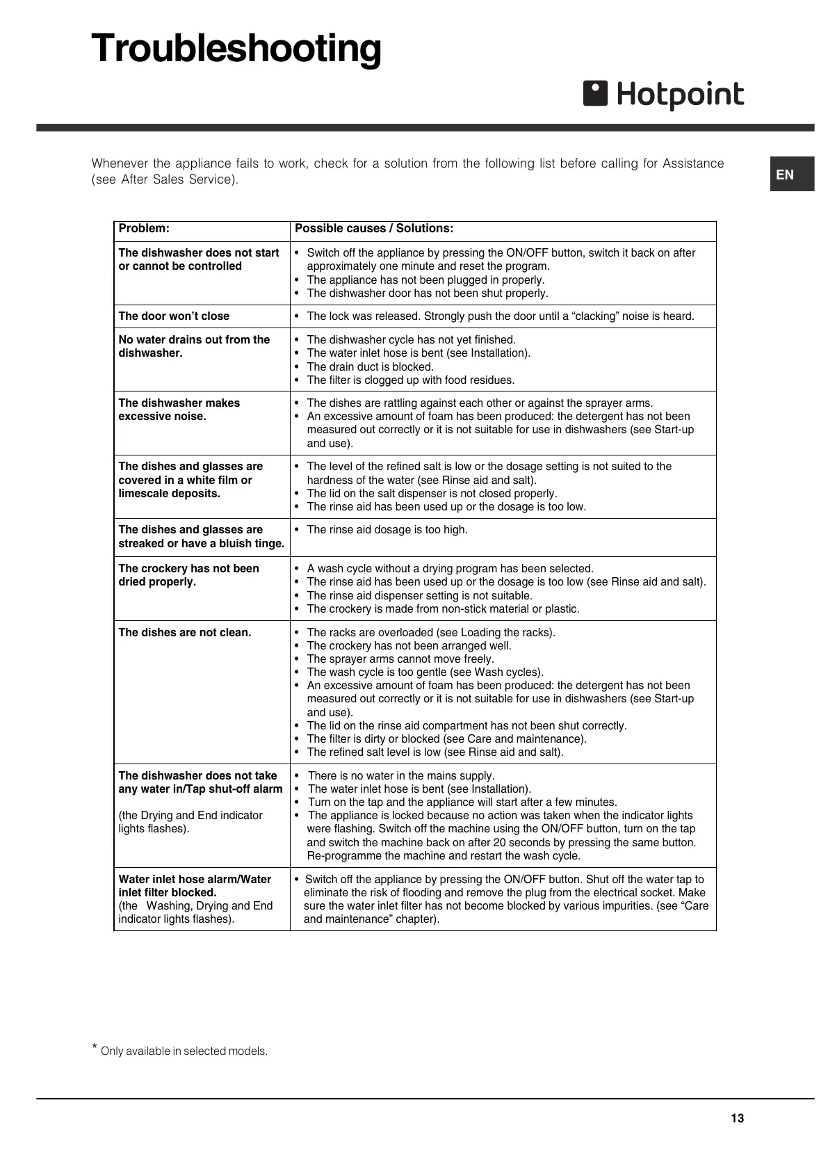 Whenever the appliance fails to work, check for a solution from the following list before calling for Assistance