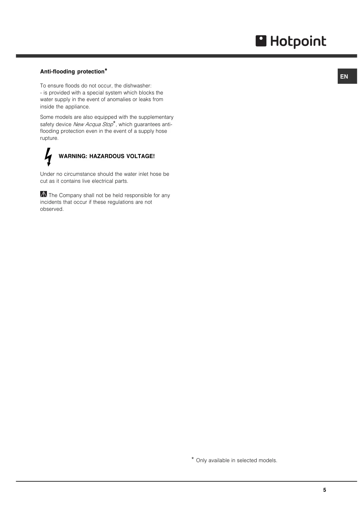 Under no circumstance should the water inlet hose be