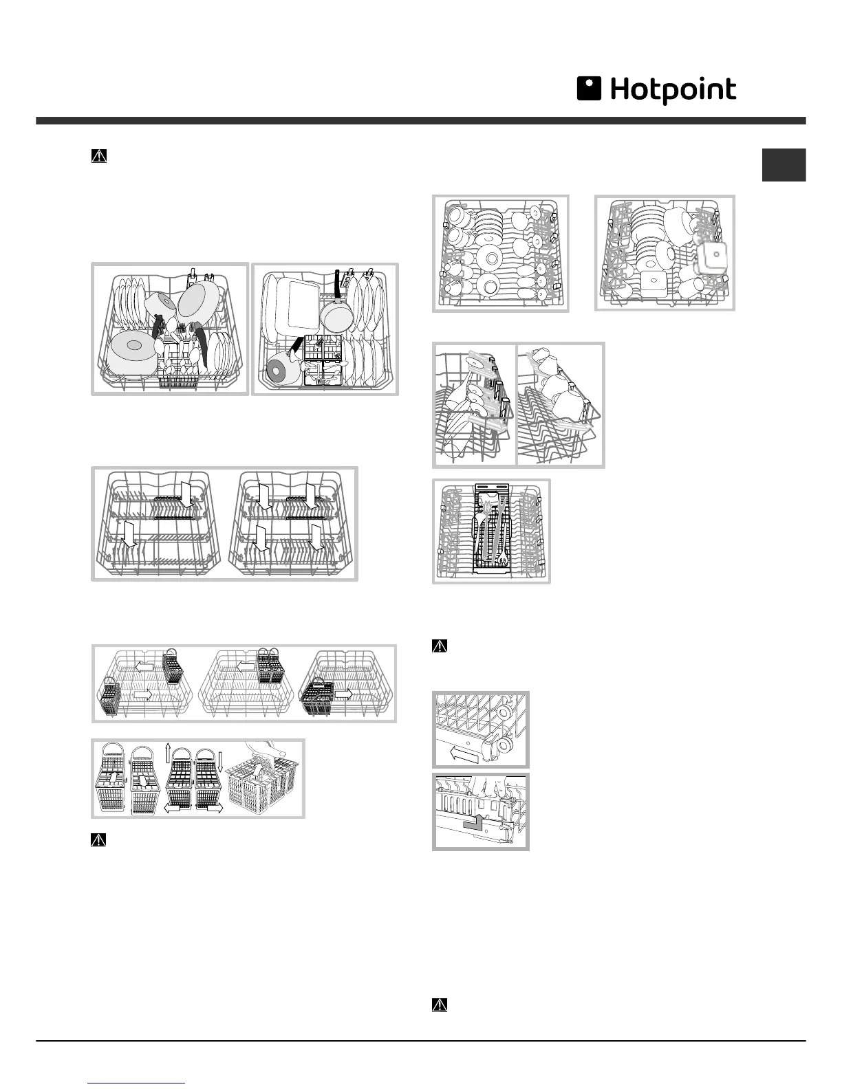 Large plates and lids should ideally be placed at the sides of the rack.