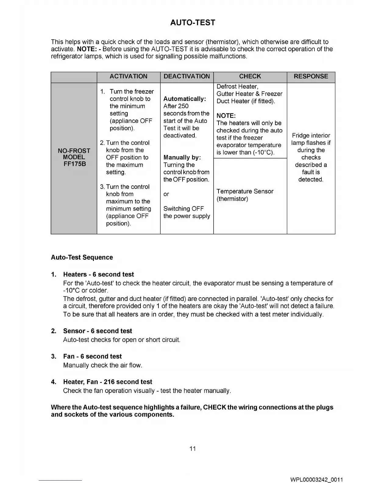 The defrost, gutter and duct heater (iffitted) are connected in parallel. 'Auto-test' only checks for