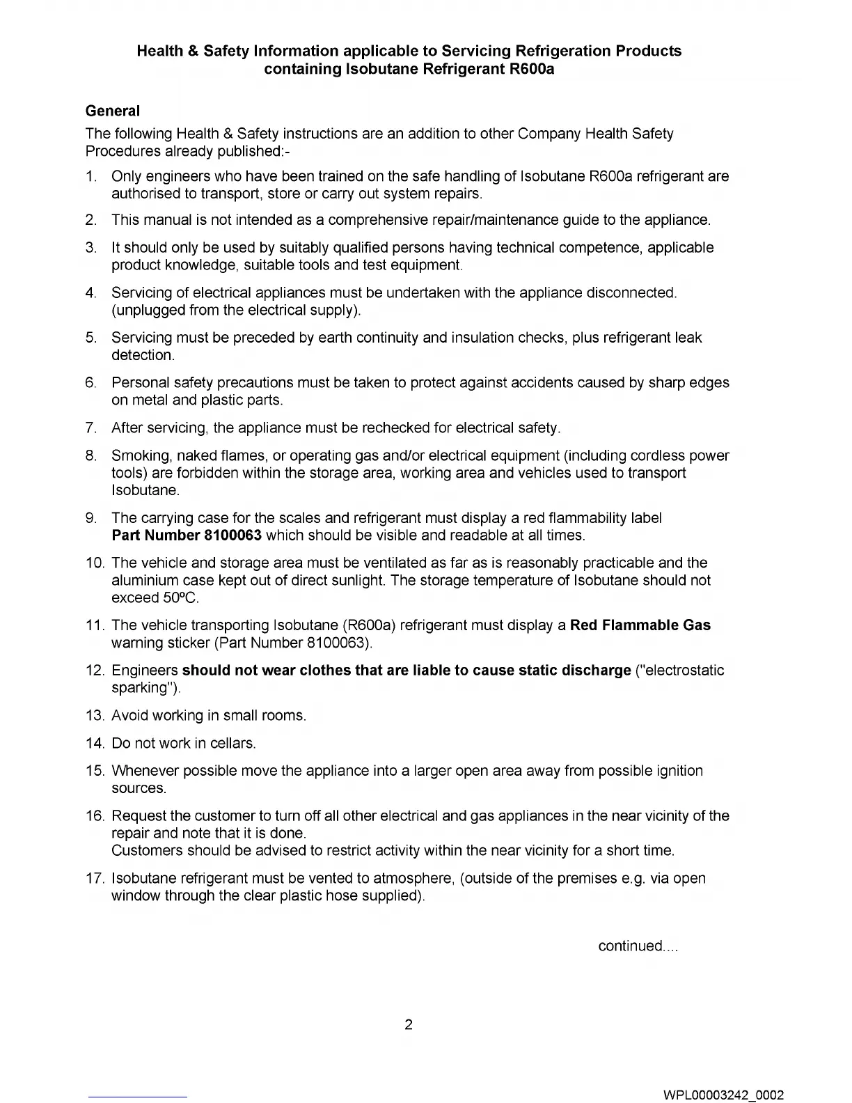 Health & Safety Information applicable to Servicing Refrigeration Products