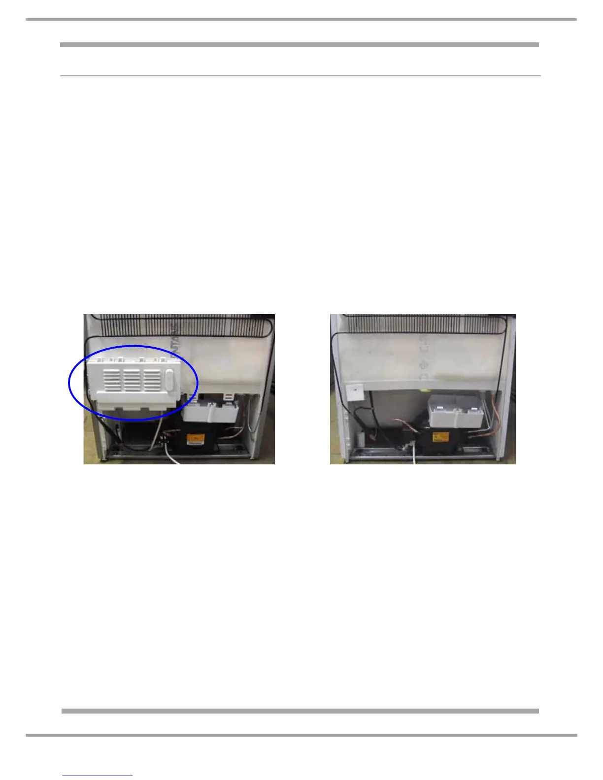 The power module is mounted at the rear of the appliance above the compressor compartment.