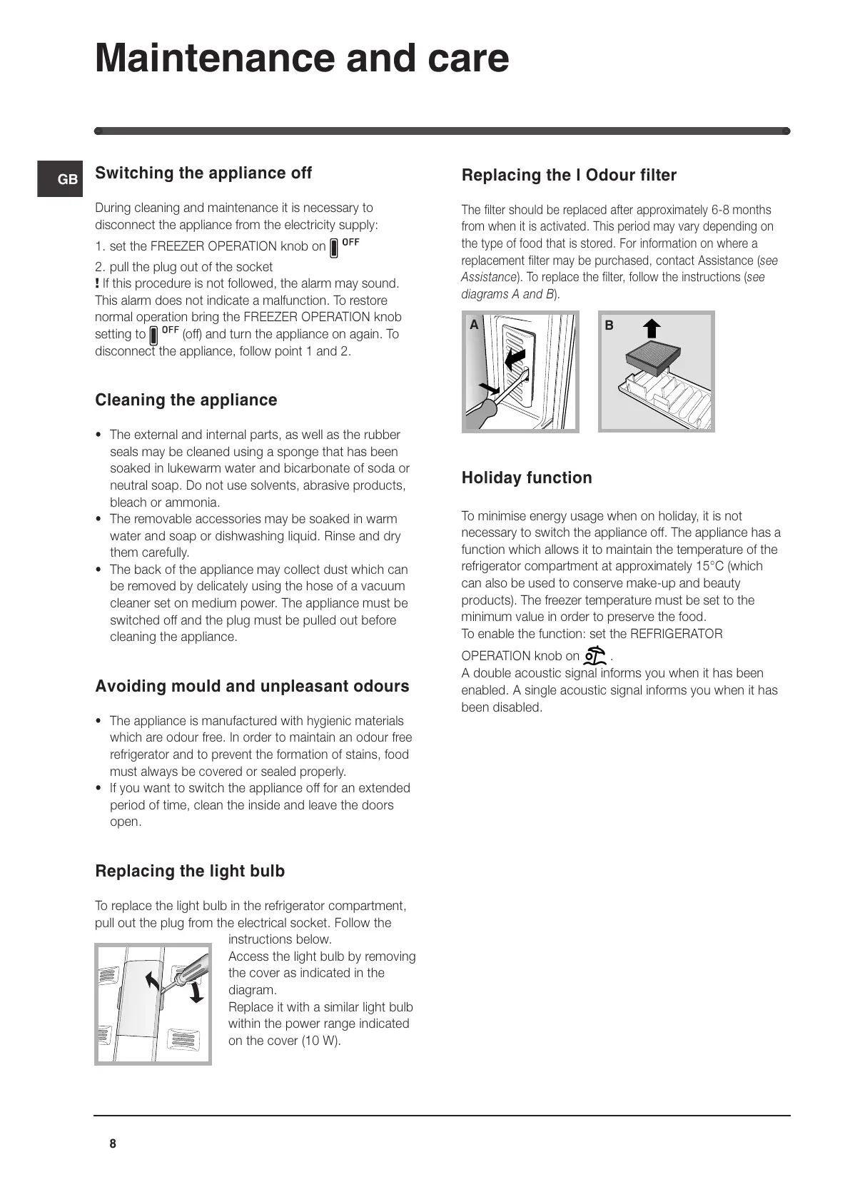 If you want to switch the appliance off for an extended
