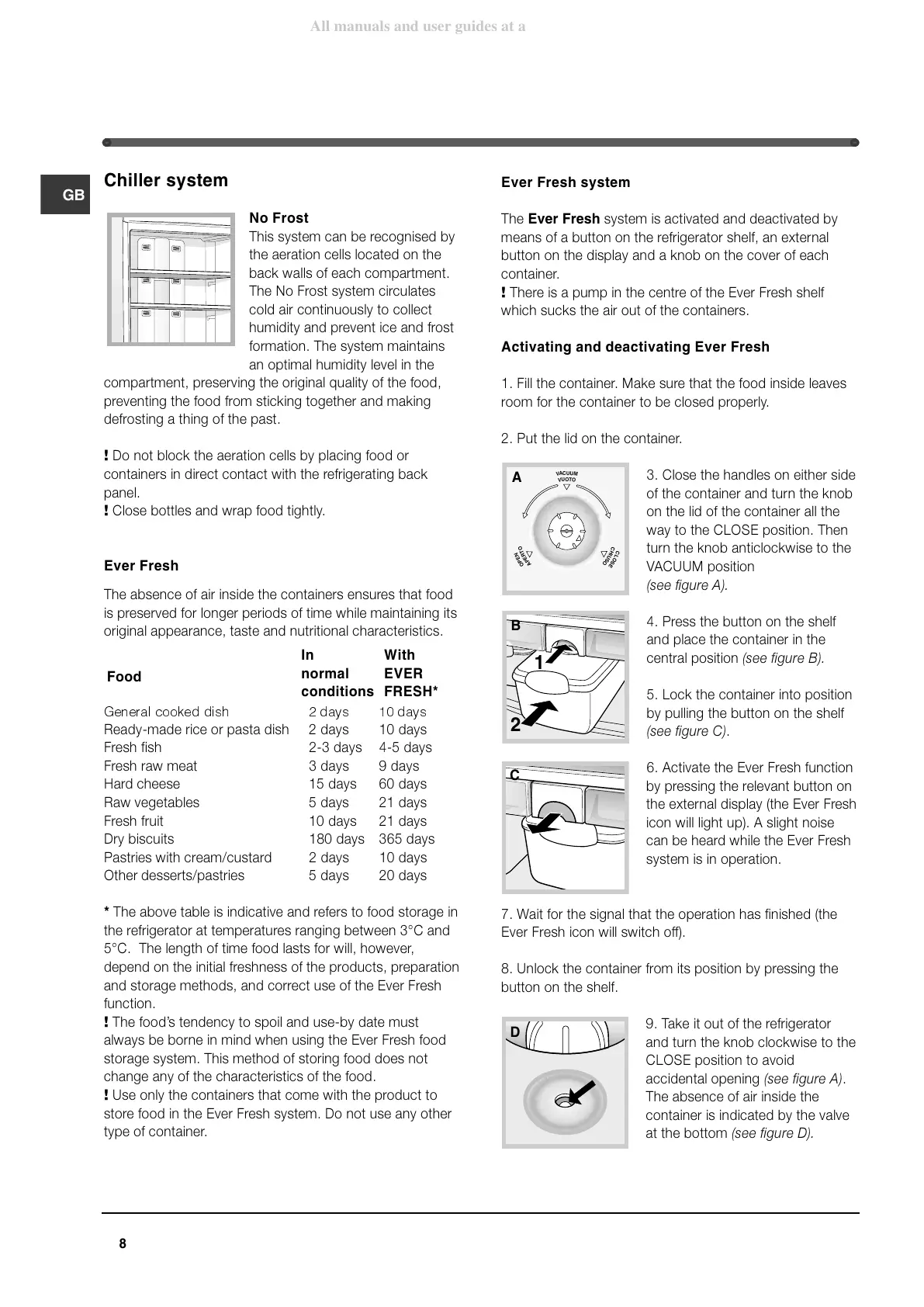 always be borne in mind when using the Ever Fresh food
