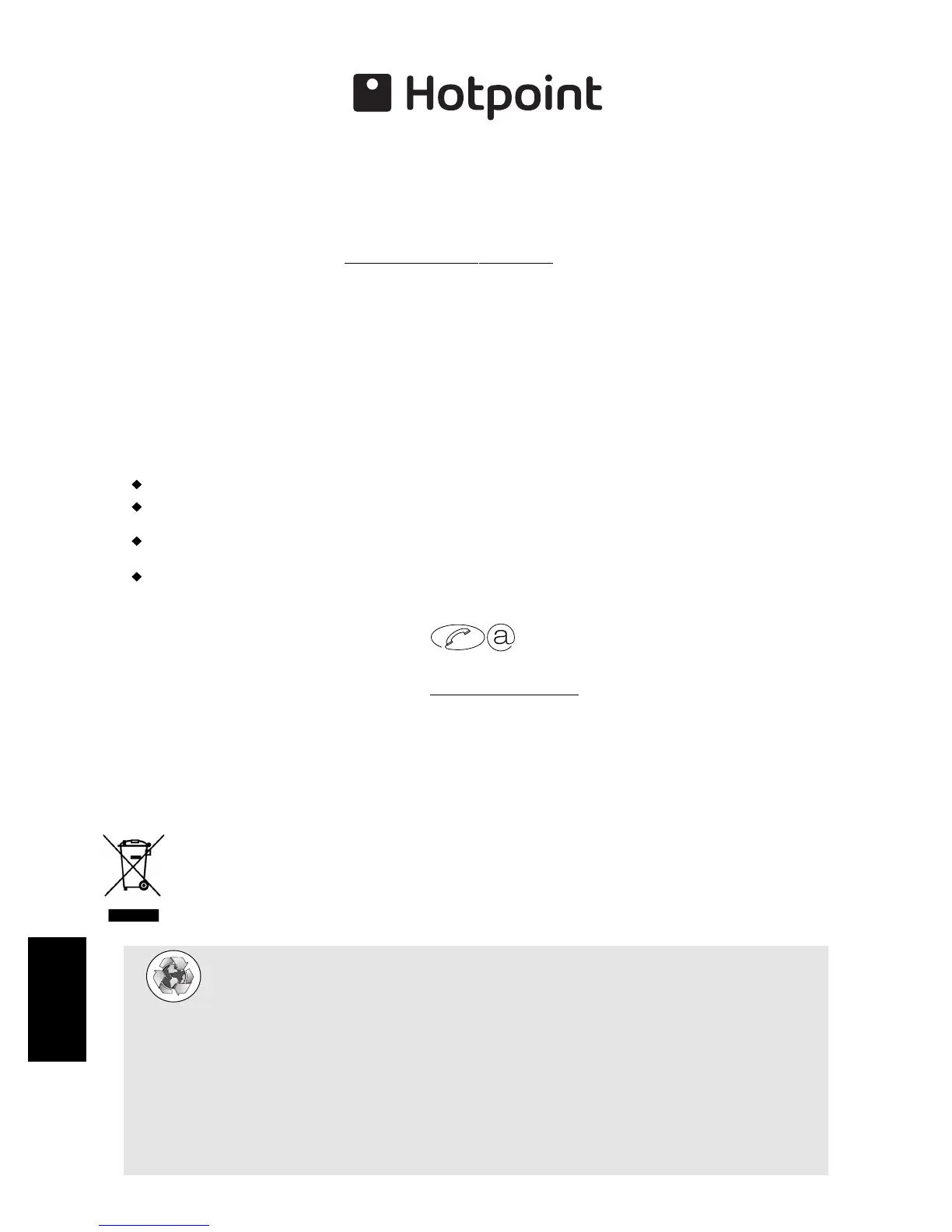 For pre purchase information on any other Hotpoint product call: 08701 50 60 70
