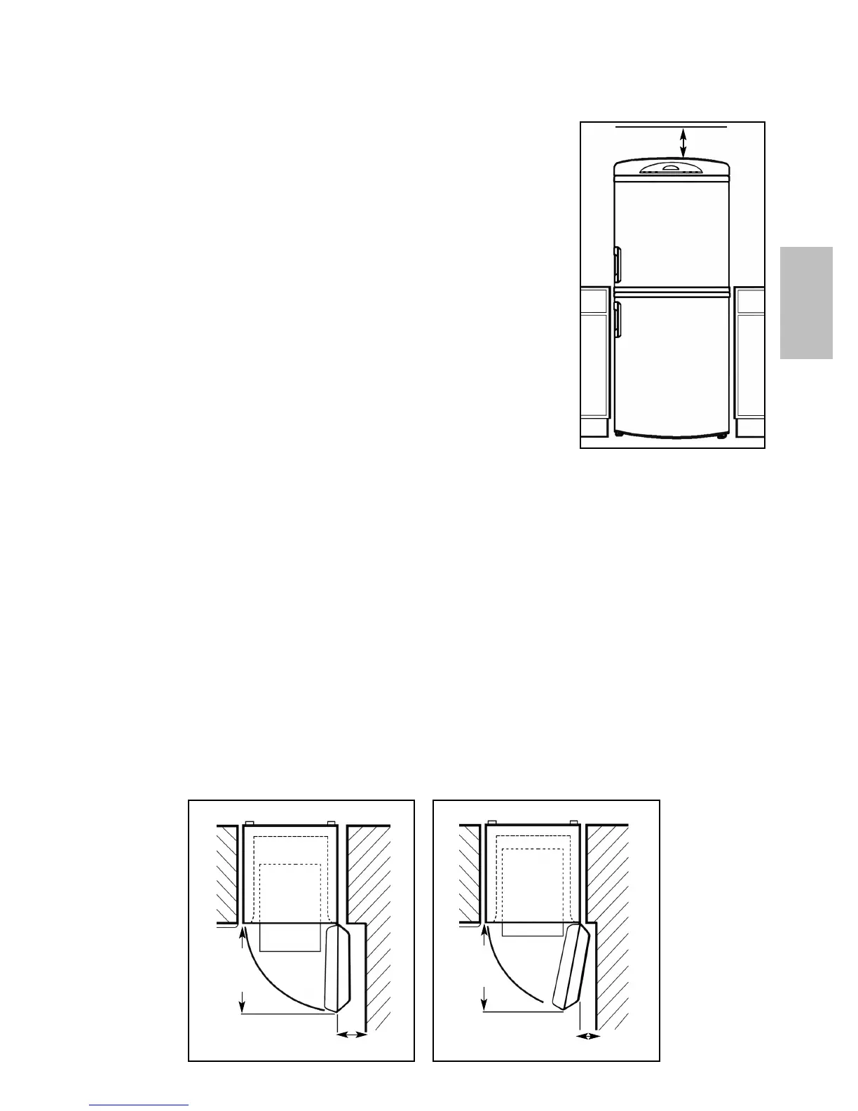 The fridge freezer needs a space of 600mm (24 inches) in front to allow the door