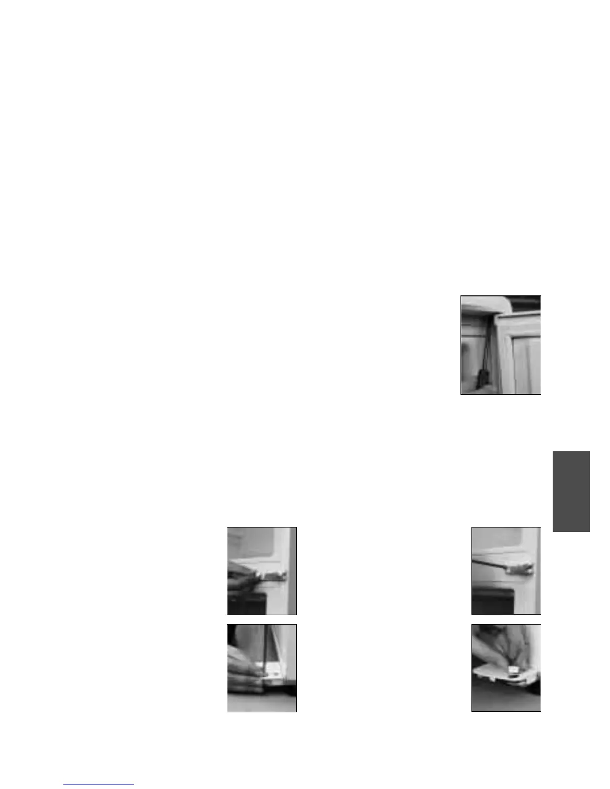 top hinge from the cabinet. Lift the door off the centre hinge.
