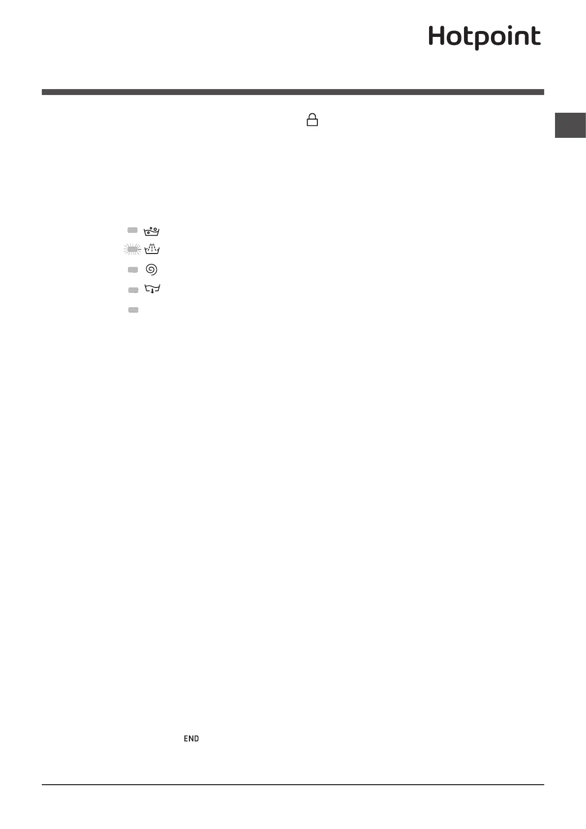 9. At the end of the wash cycle the indicator light will switch on. The DOOR LOCKED indicator light will switch off, indica-