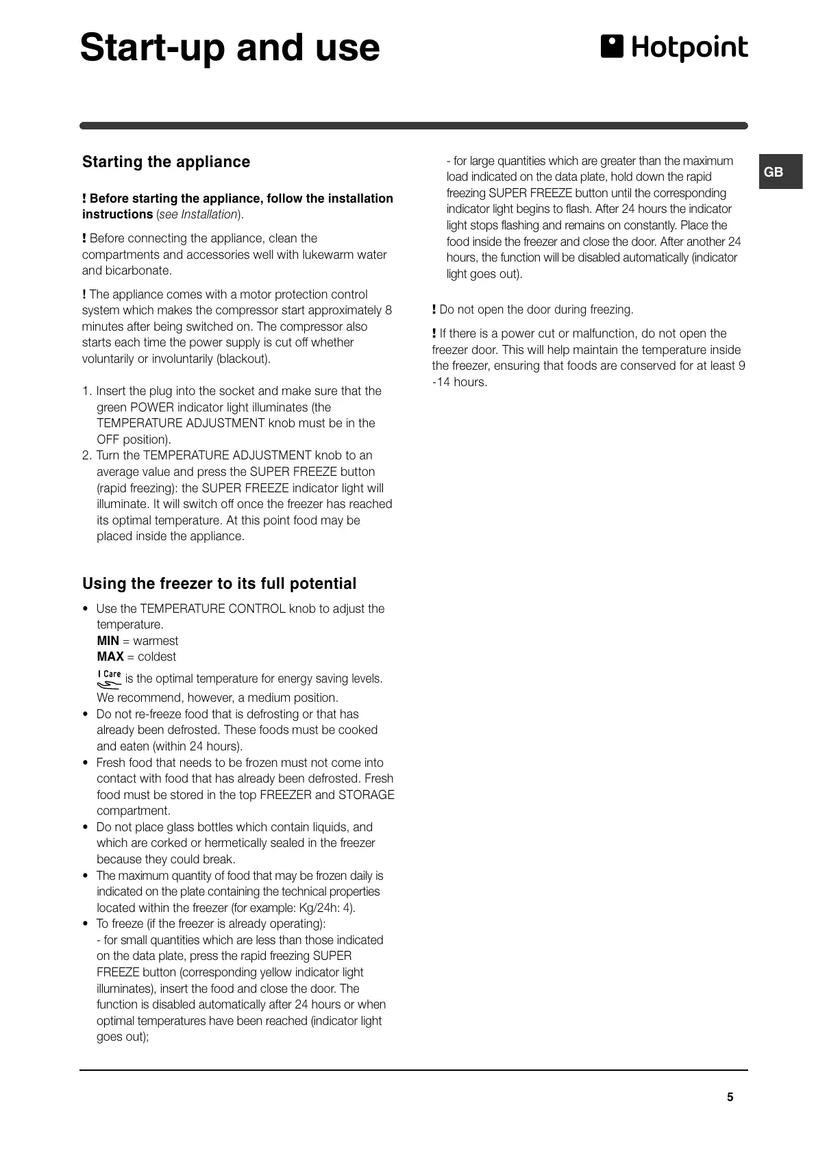 food inside the freezer and close the door. After another 24
