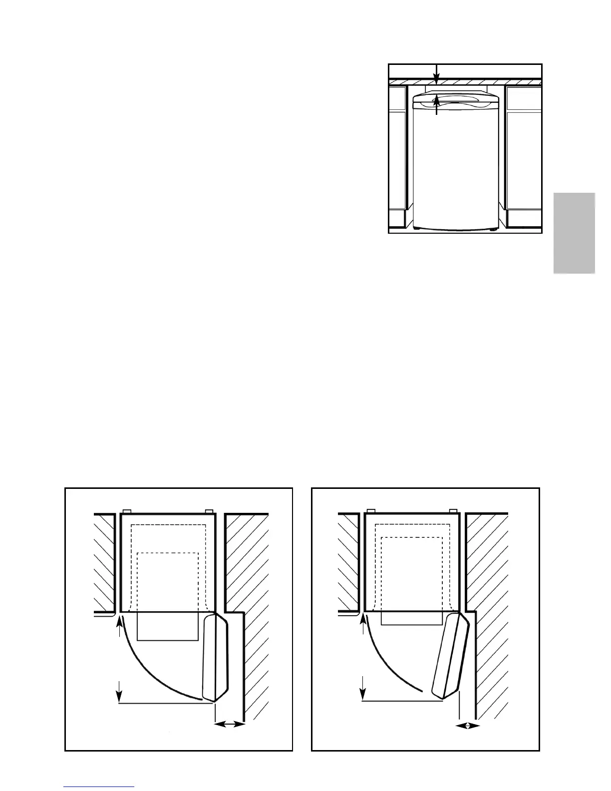The freezer needs a space of 600mm (24 inches) in front to allow the door to