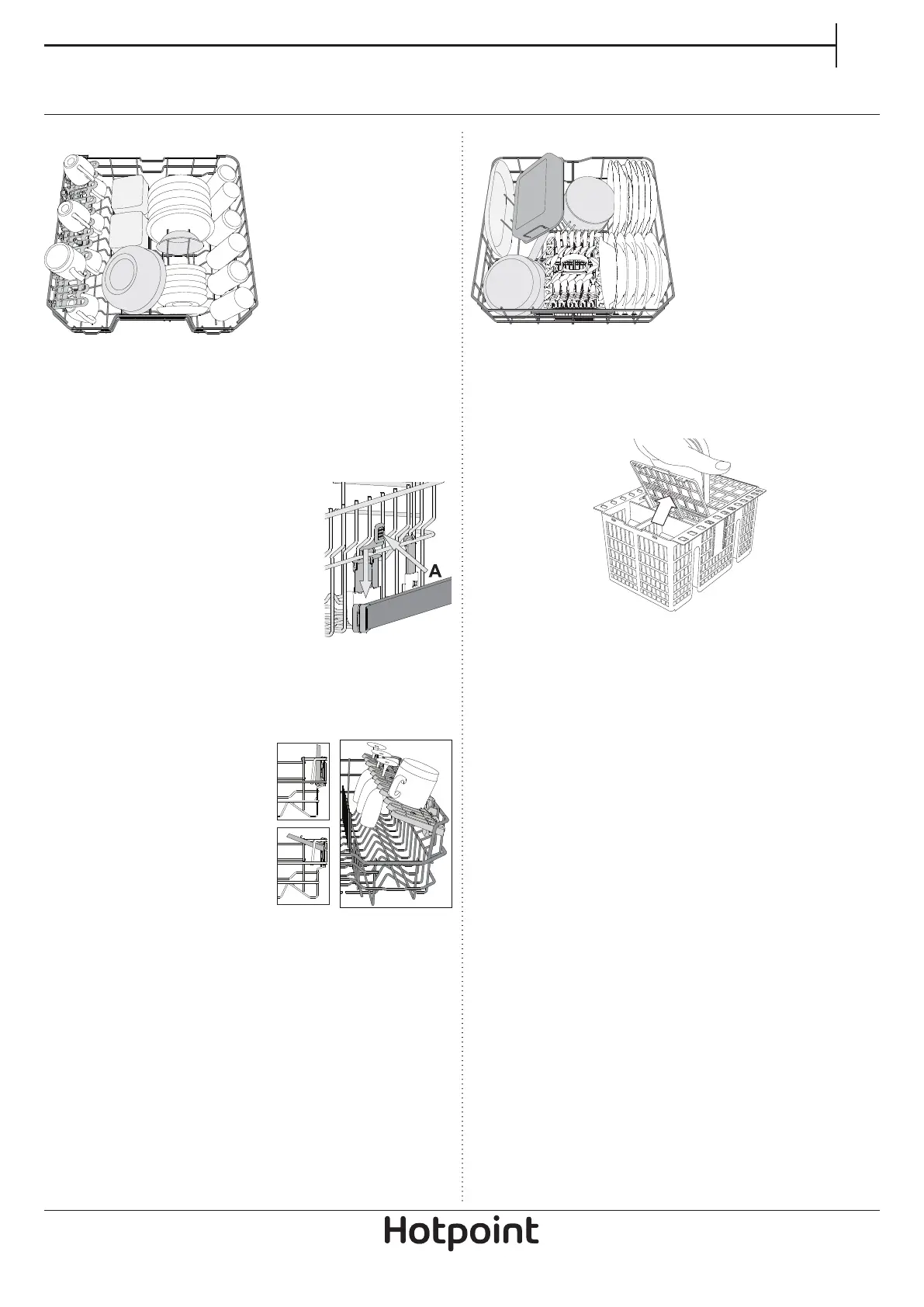 The cutlery basket should be positioned only at the front of the lower