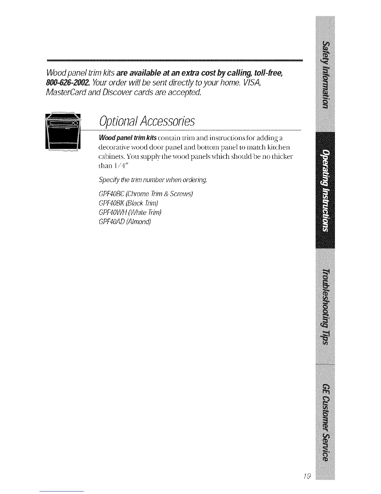 Woodpanel trim kits are available at an extra cost by calling, toll-free,