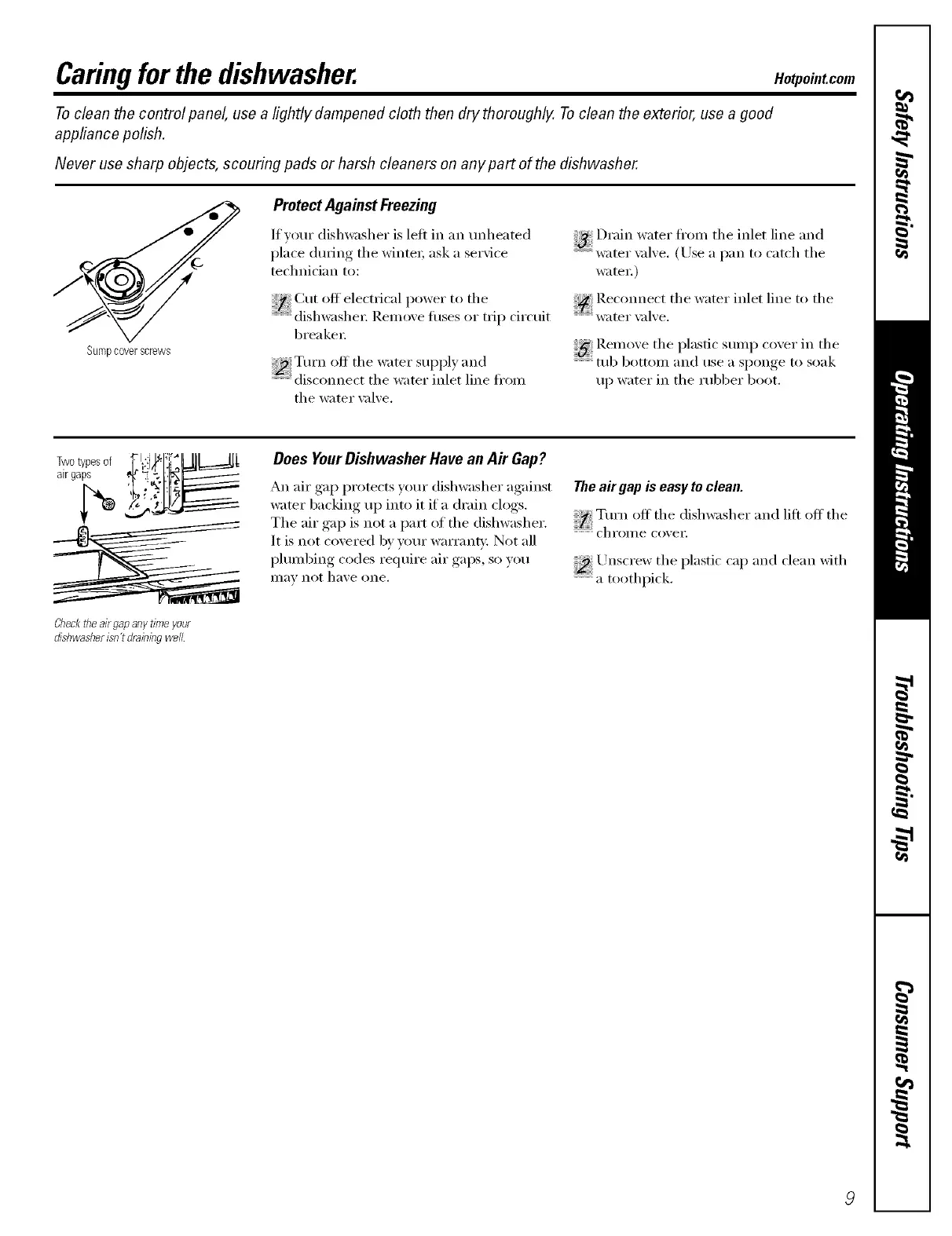 Never use sharp objects, scouring pads or harsh cleaners on any part of the dishwasher.