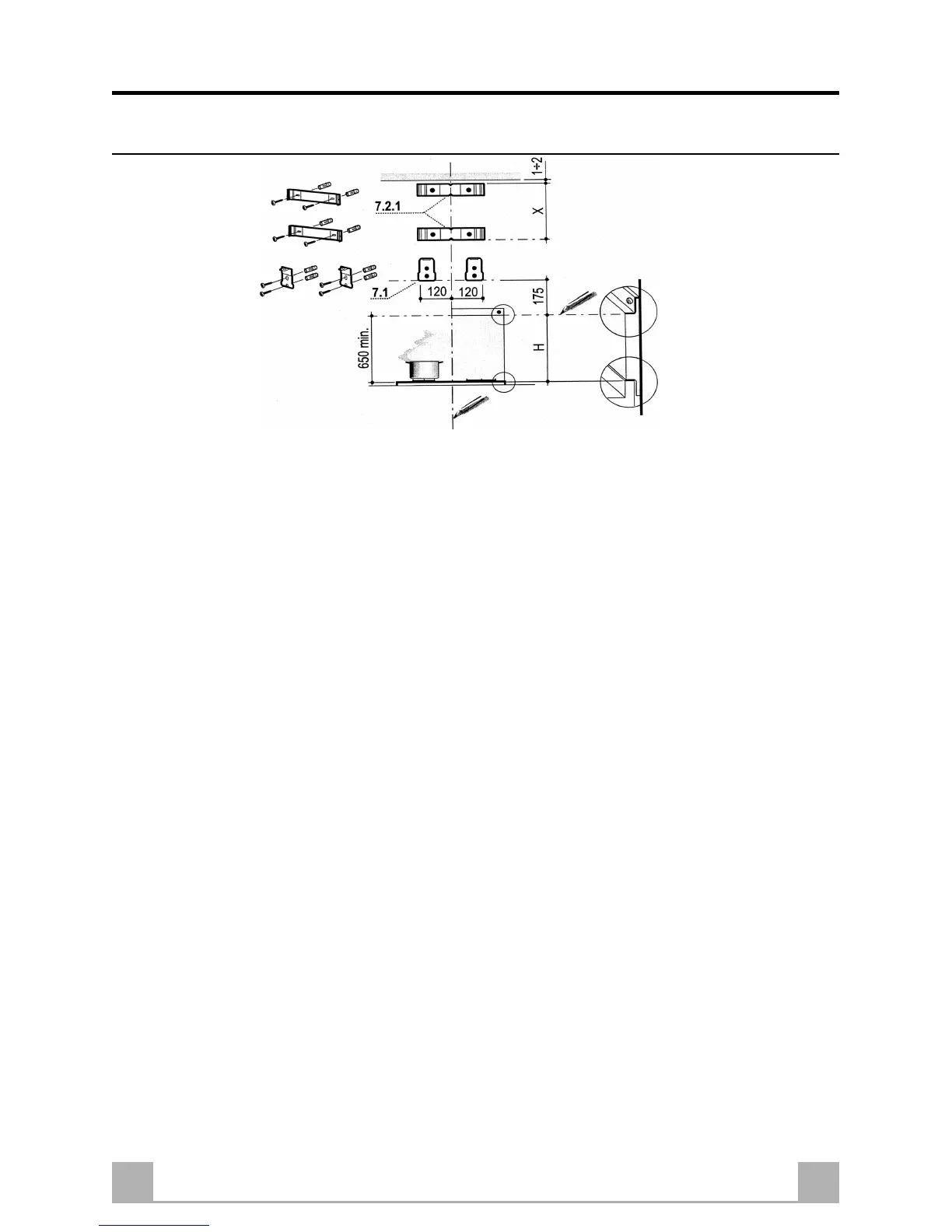 • Place bracket 7.2.1 on the wall as shown at X mm below the first bracket (X = height of the upper