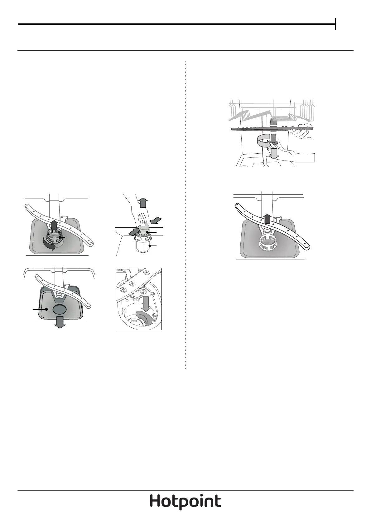 To remove the upper spray arm, turn the plastic locking ring in an anti-
