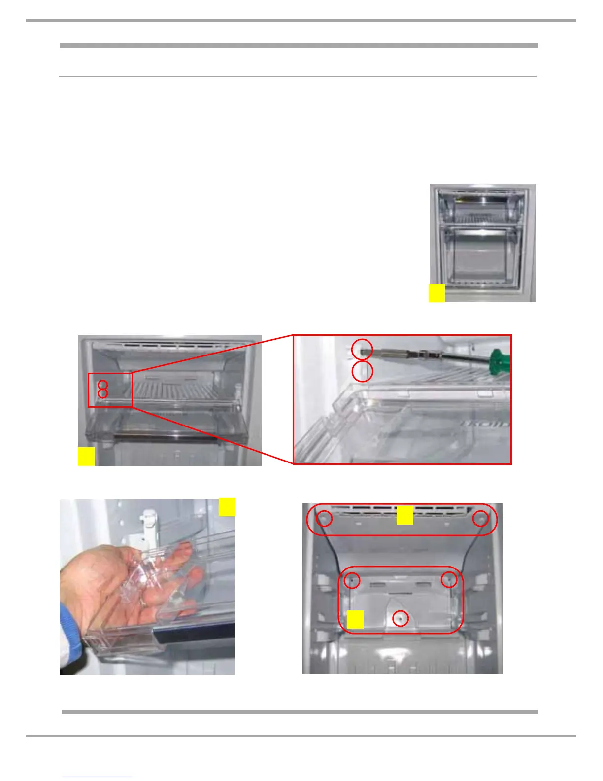 4. Unscrew the 3 screws on the front panel of the freezer cavity.