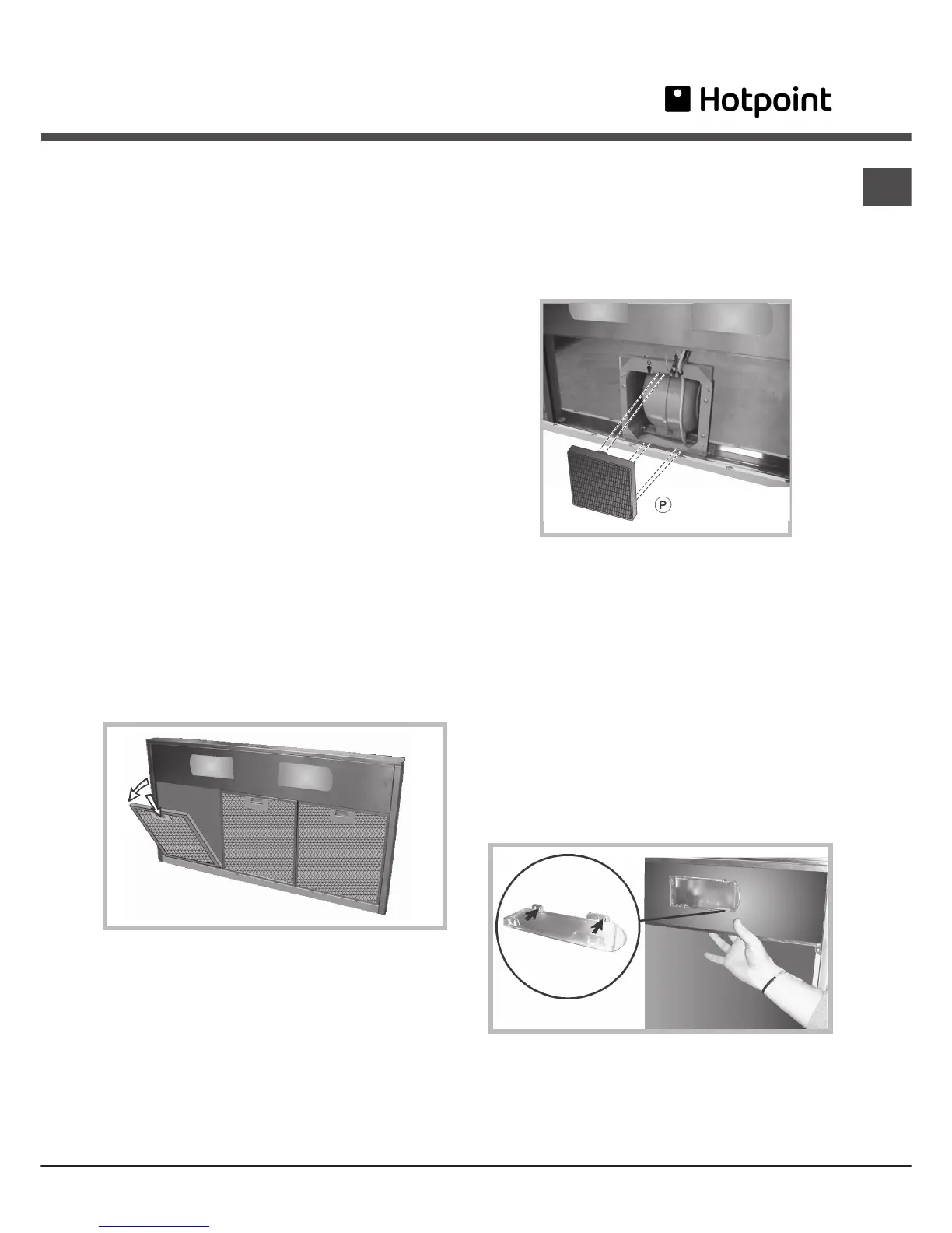 To remove the grease filters, push the catch near the