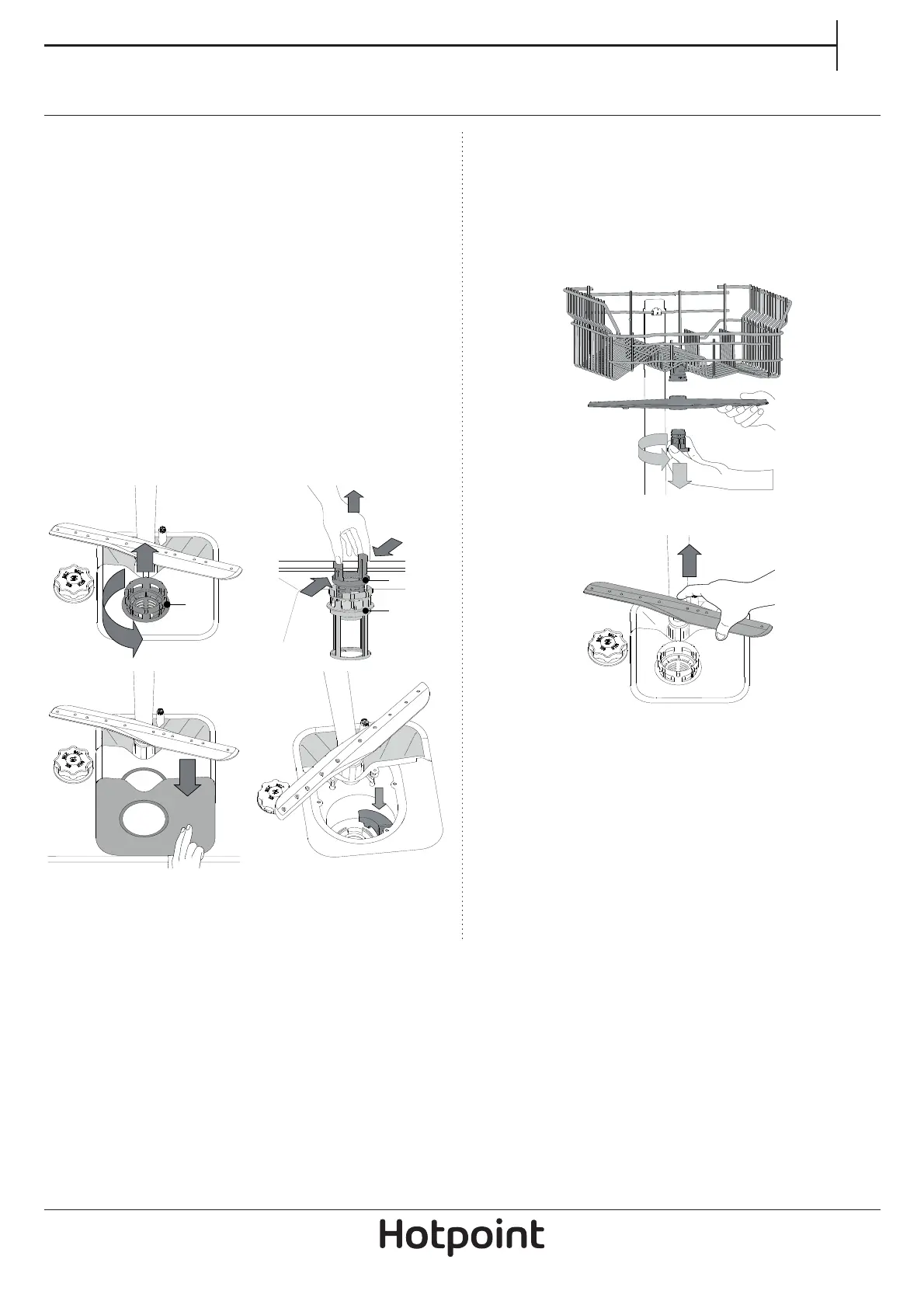 The lower spray arm may be removed by pulling it upwards.