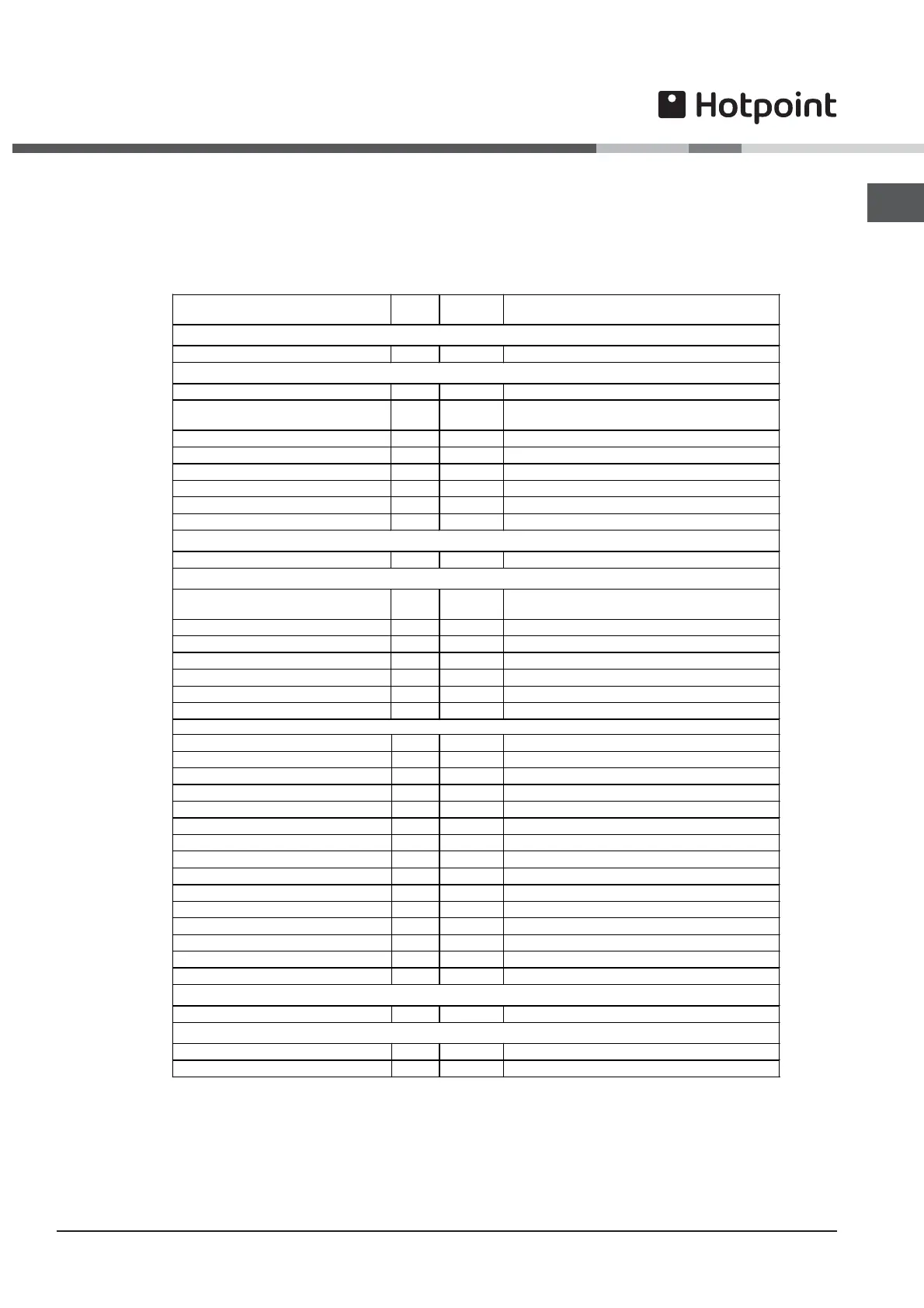 Main Oven Cooking Chart