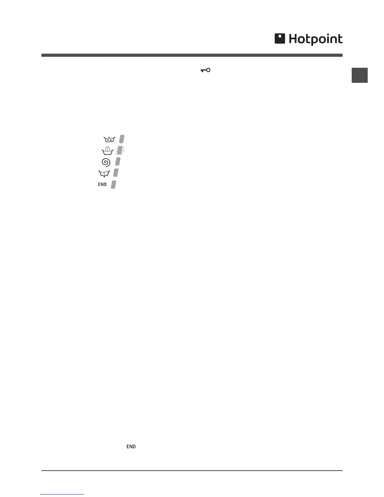 8. At the end of the wash cycle the indicator light will switch on. The DOOR LOCKED indicator light will switch off, indica-