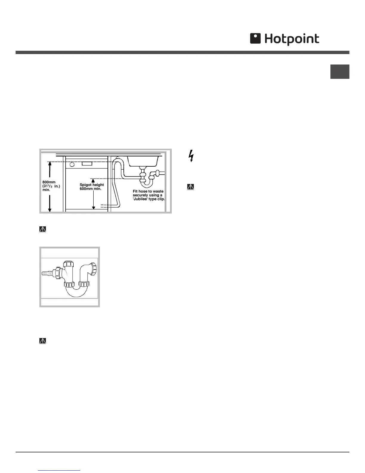 Under no circumstance should the water inlet hose