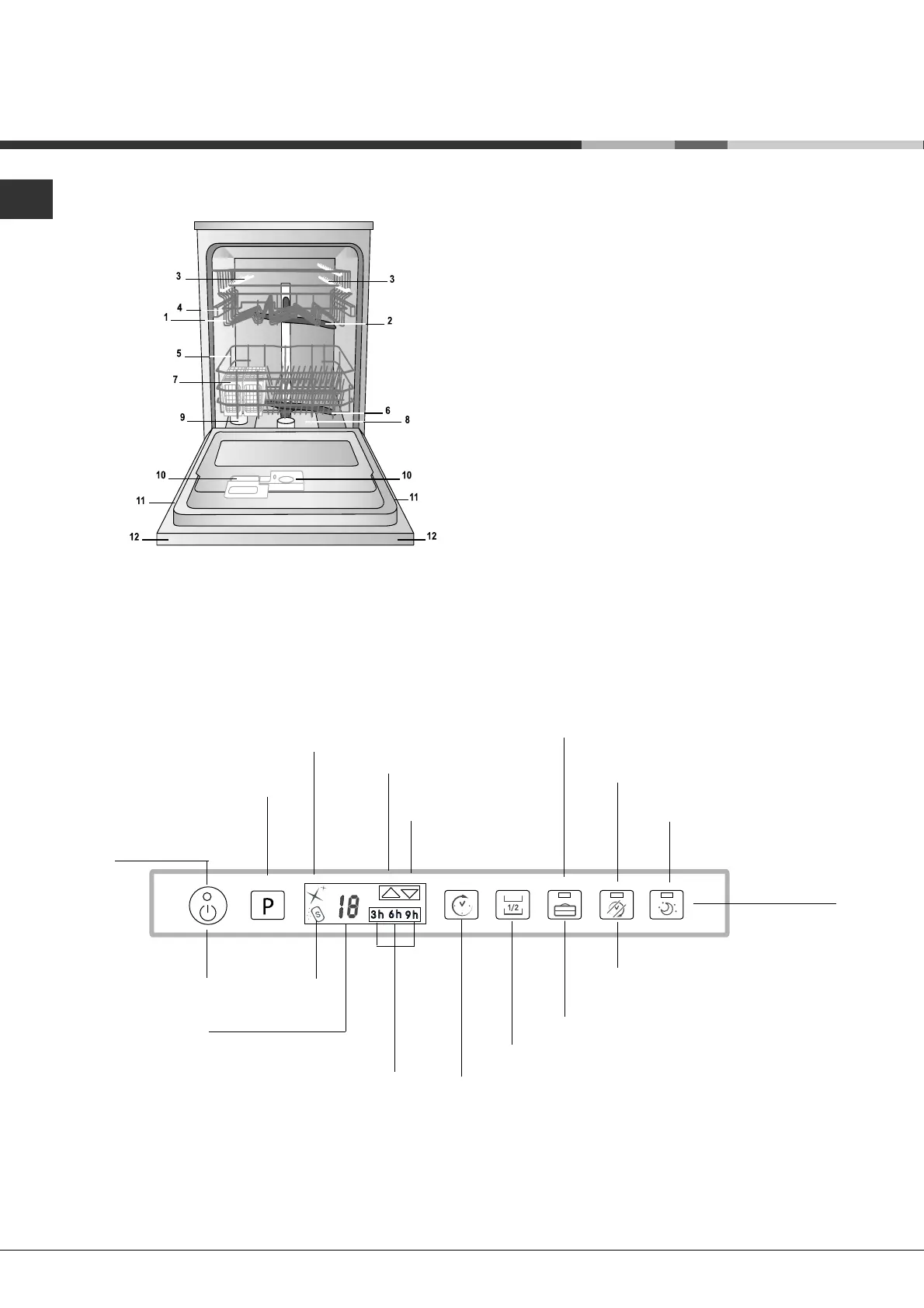 Hotpoint LFT 32147 - Dishwasher Component Overview; Overall View and Part Identification; Control Panel Button Functions