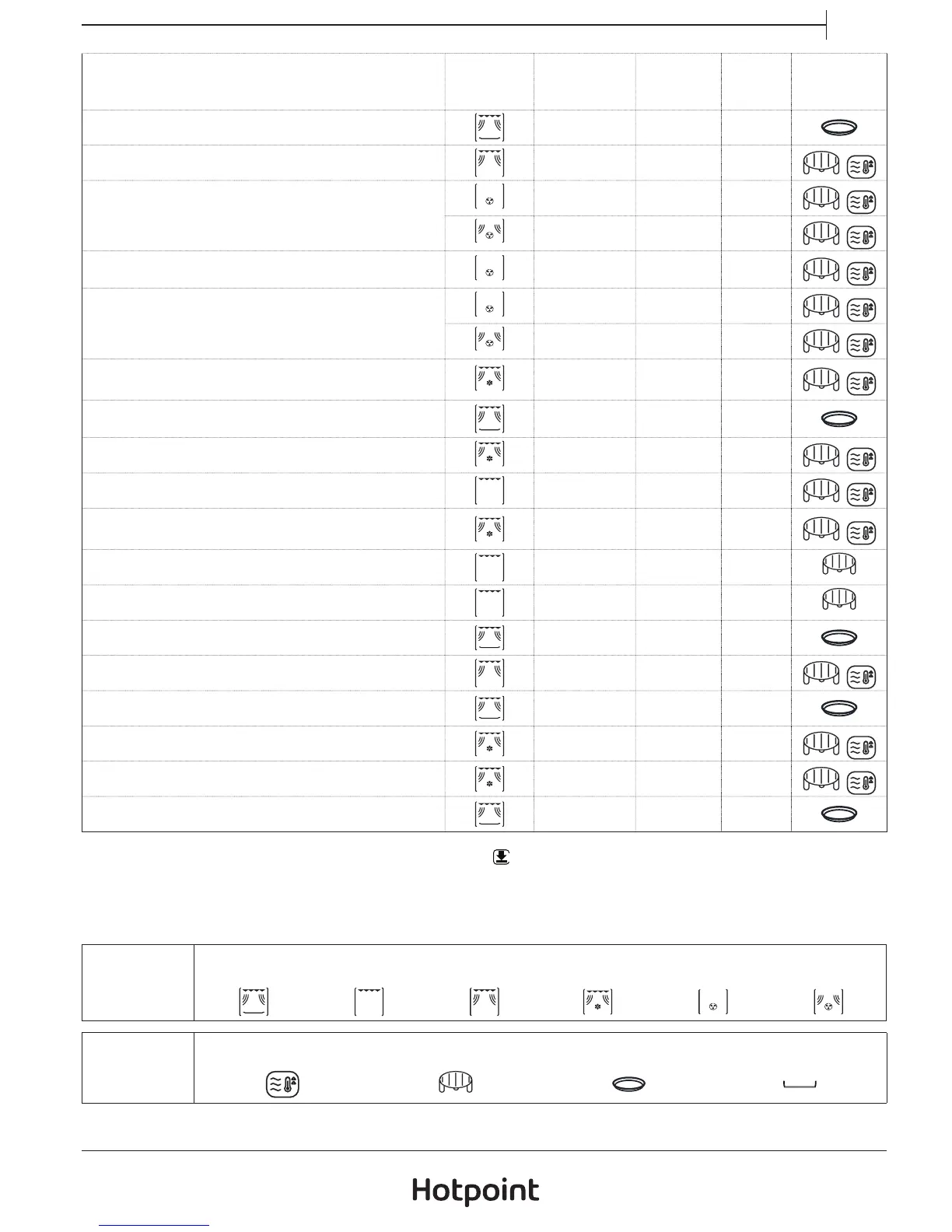 www.hotpoint.eu for the table of tested recipes,