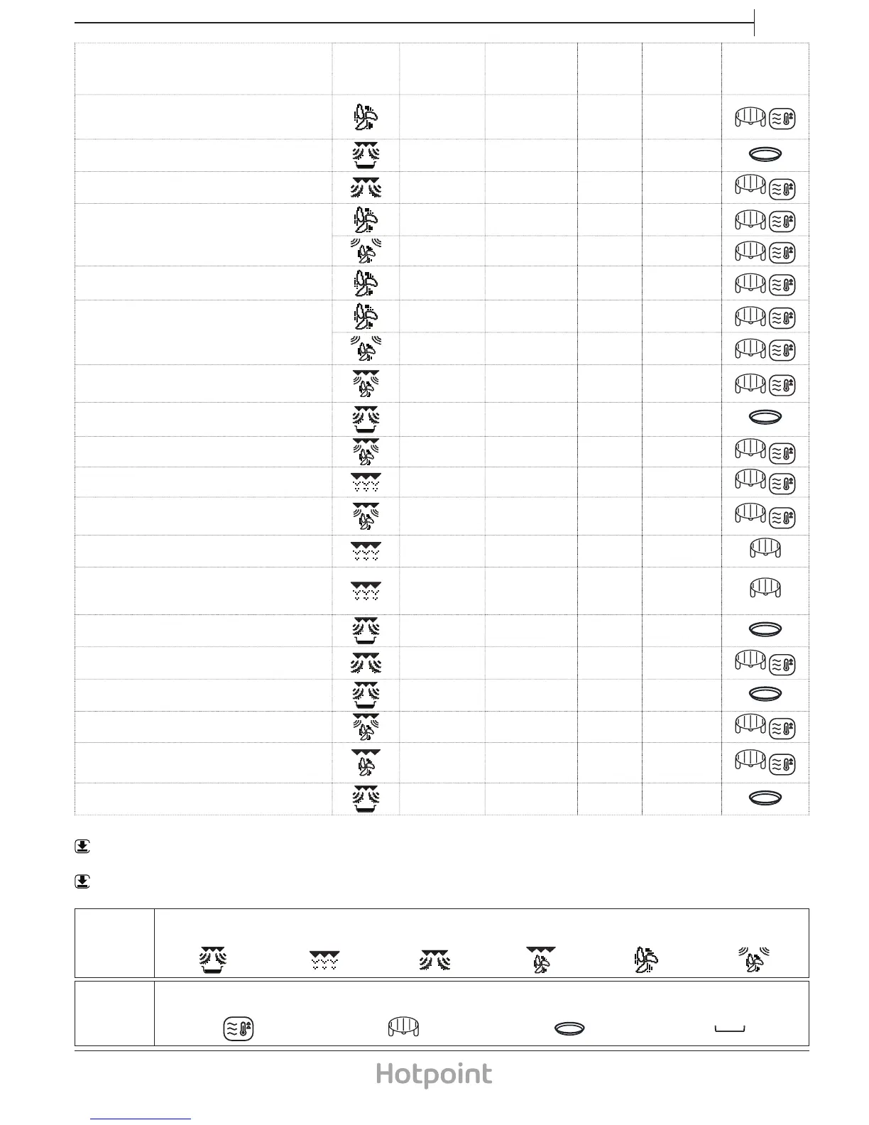 Download the Use and Care Guide from www.hotpoint.eu for the table of tested recipes, compiled for the