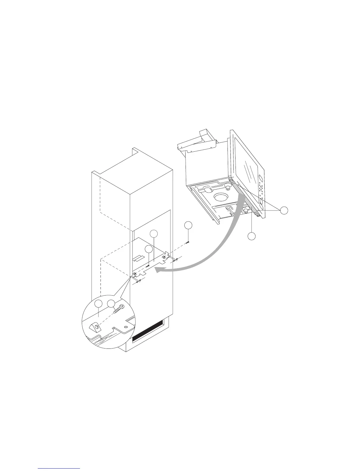 Remove the 2 screws (X)from the fastening bar under the microwave oven.