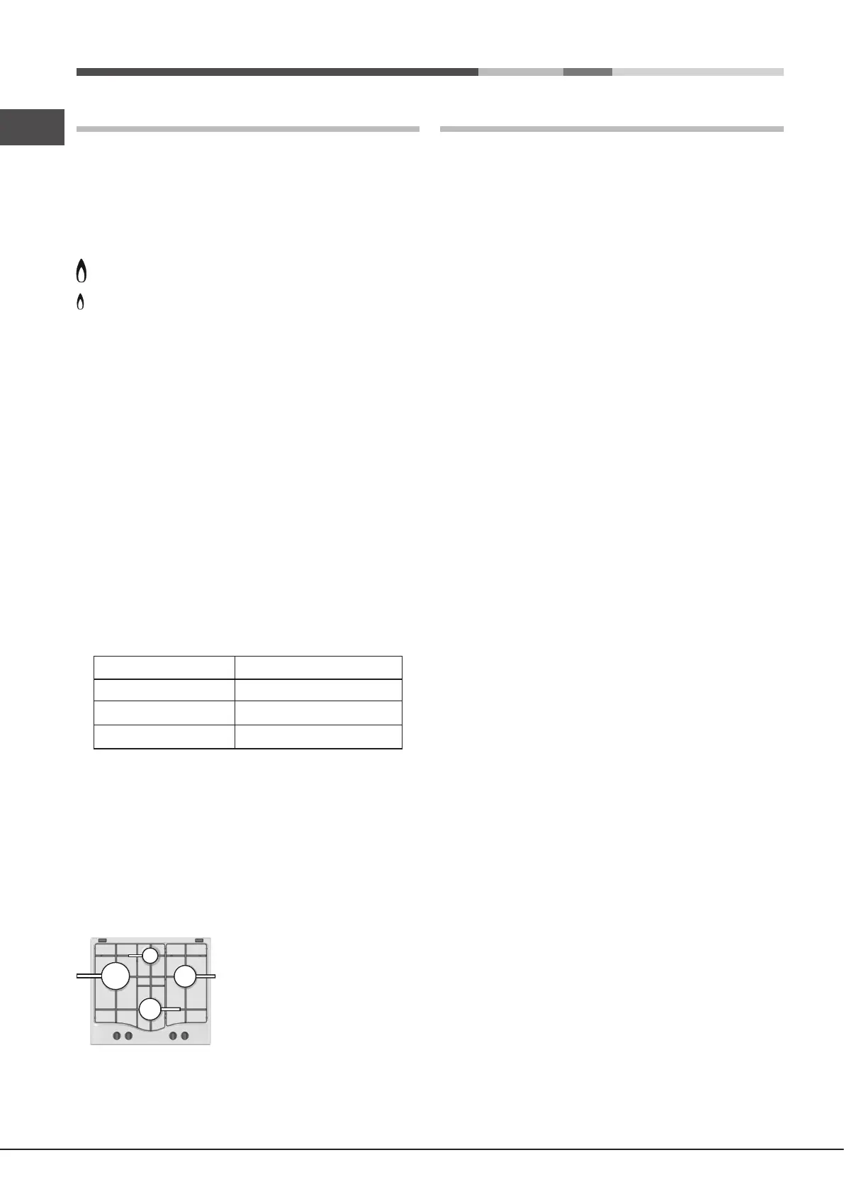 ! The position of the corresponding gas burner is shown on every knob.