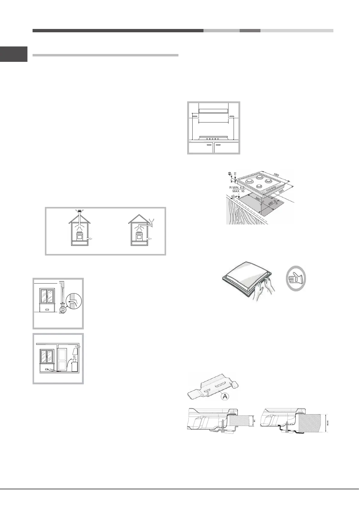 NOTE: In case of installation of a hood above the hob, please refer to the