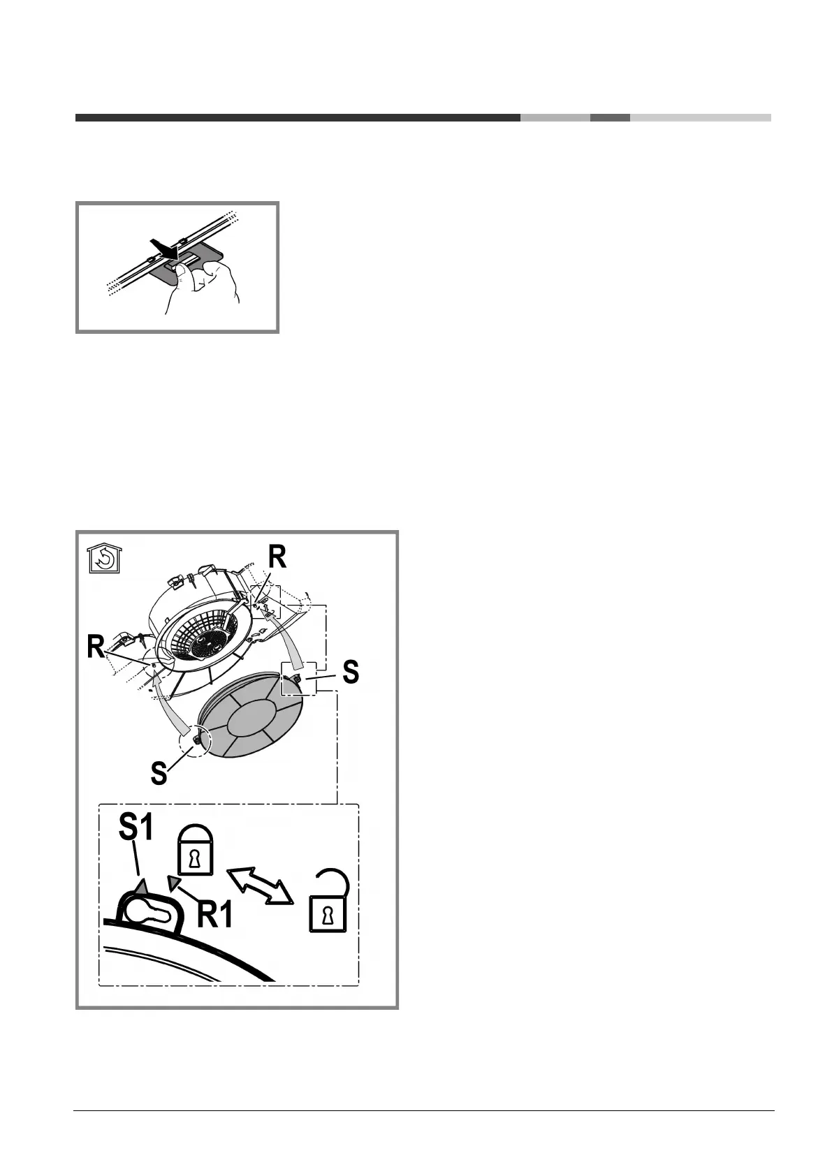 Align the pins R on the cowl with the slots S, then turn the filter clockwise until it