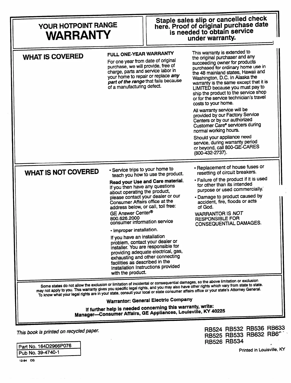 Warrantor: General Electric Company