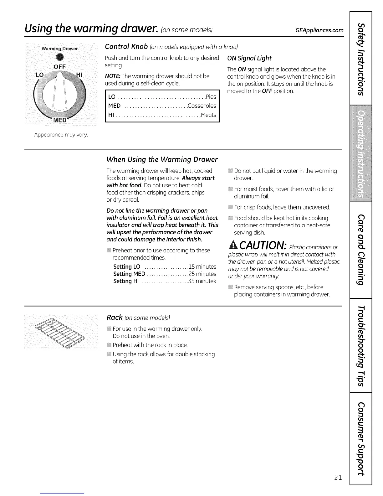 Using the worming drower, ionsomemodetsl GEAppliunces.com