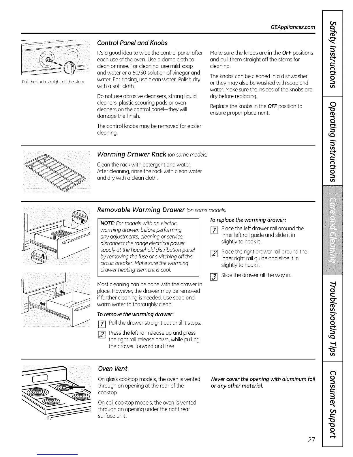 Thecontrol knobs may be removed for easier