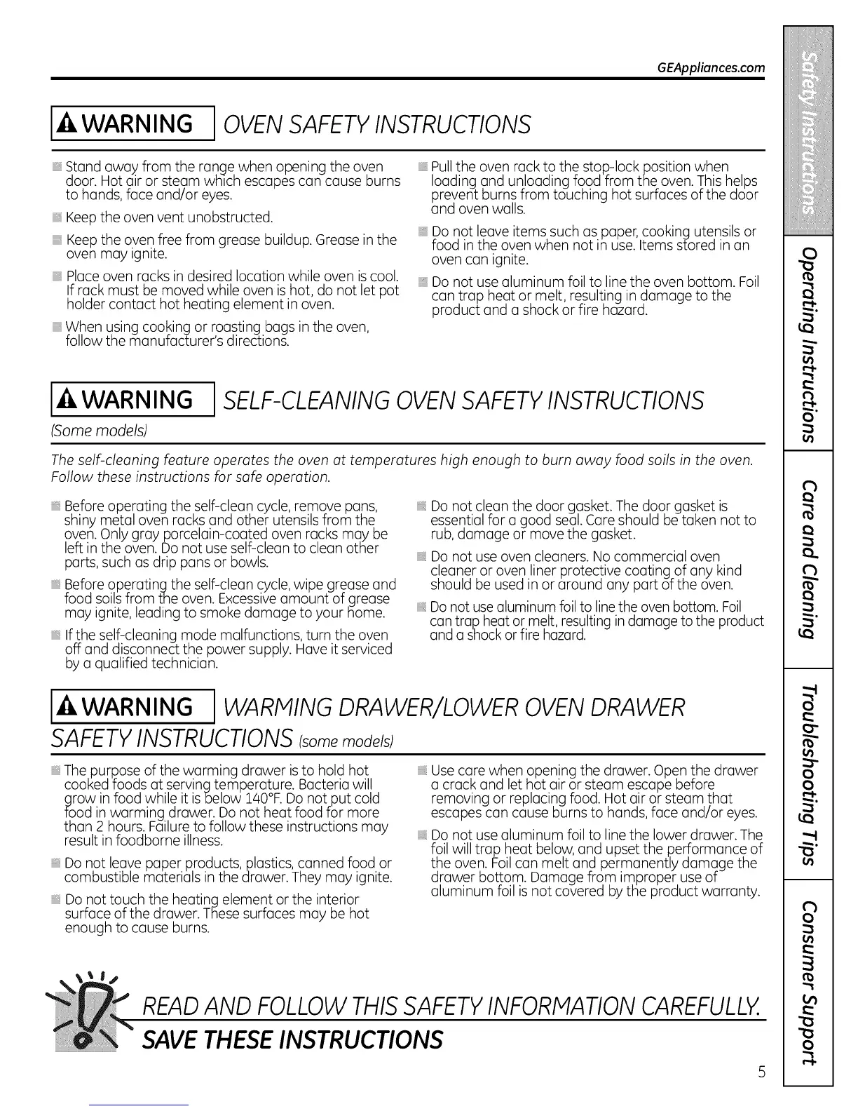 SELF-CLEANING OVEN SAFETY INSTRUCTIONS