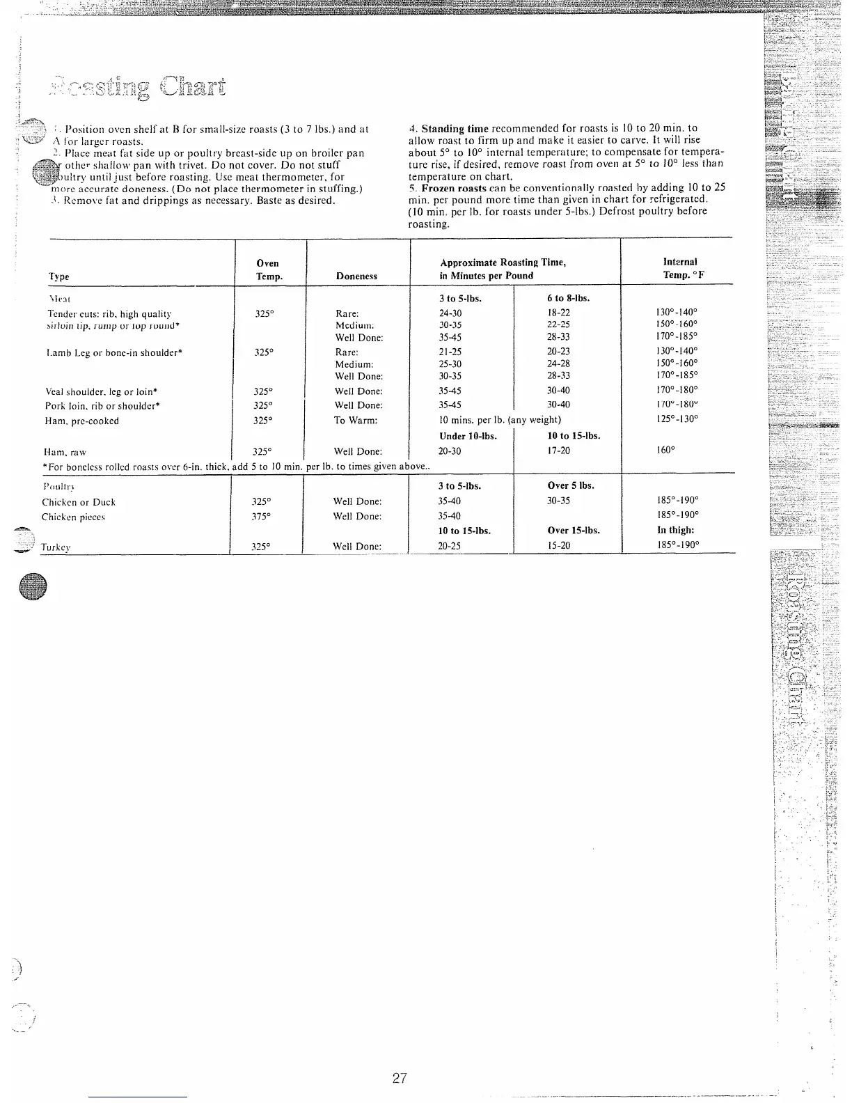 (10 min. per lb. for roasts under 5-lbs,) Defrost poultry before