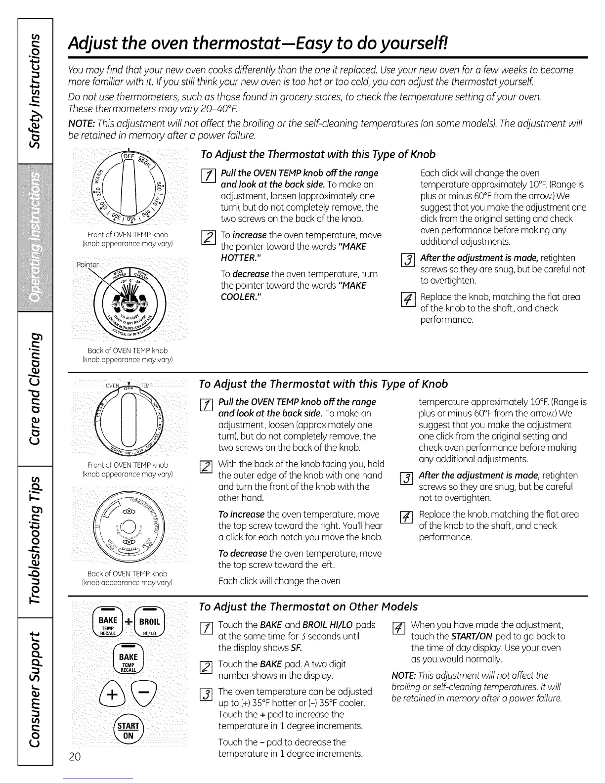 more familiar with it. Ifyou still think your new oven is too hot or too cold,you can adjust the thermostat yourself.