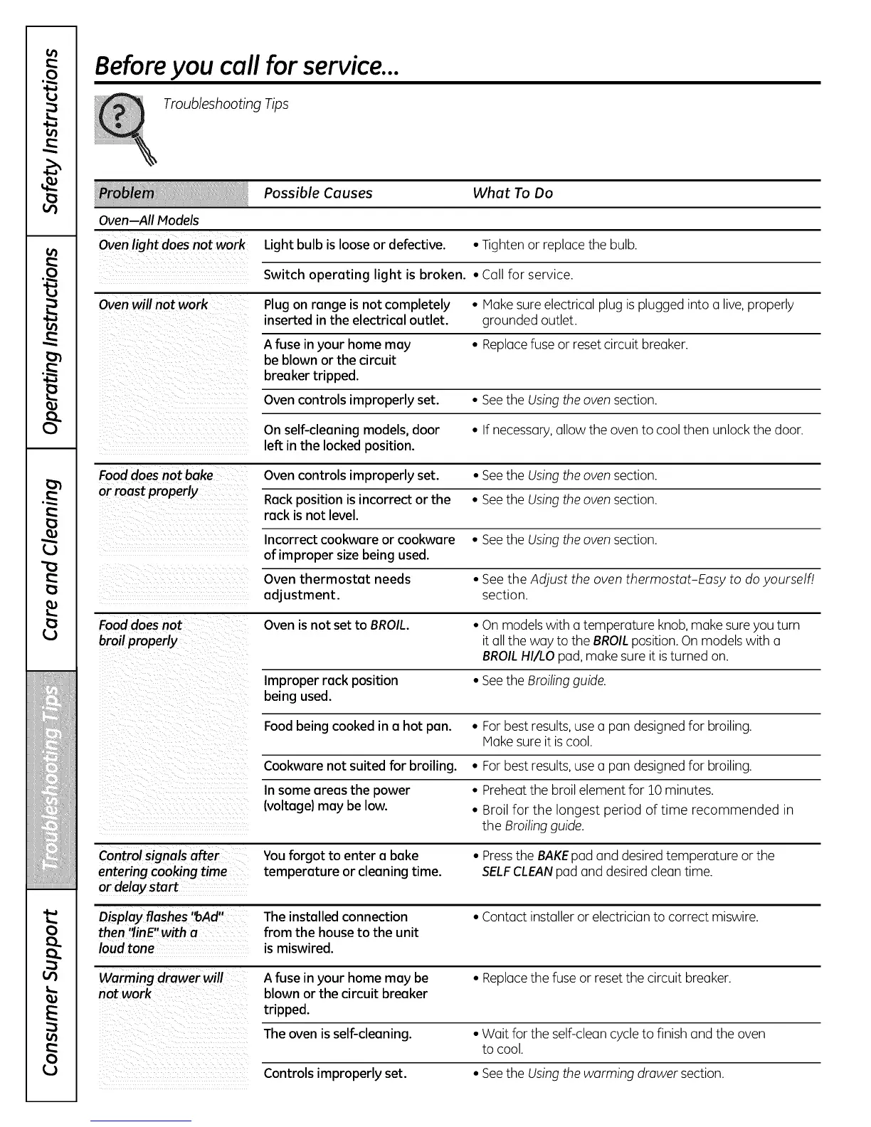 Ovenlight does not work Light bulb is loose or defective. • Tighten or replace the bulb.