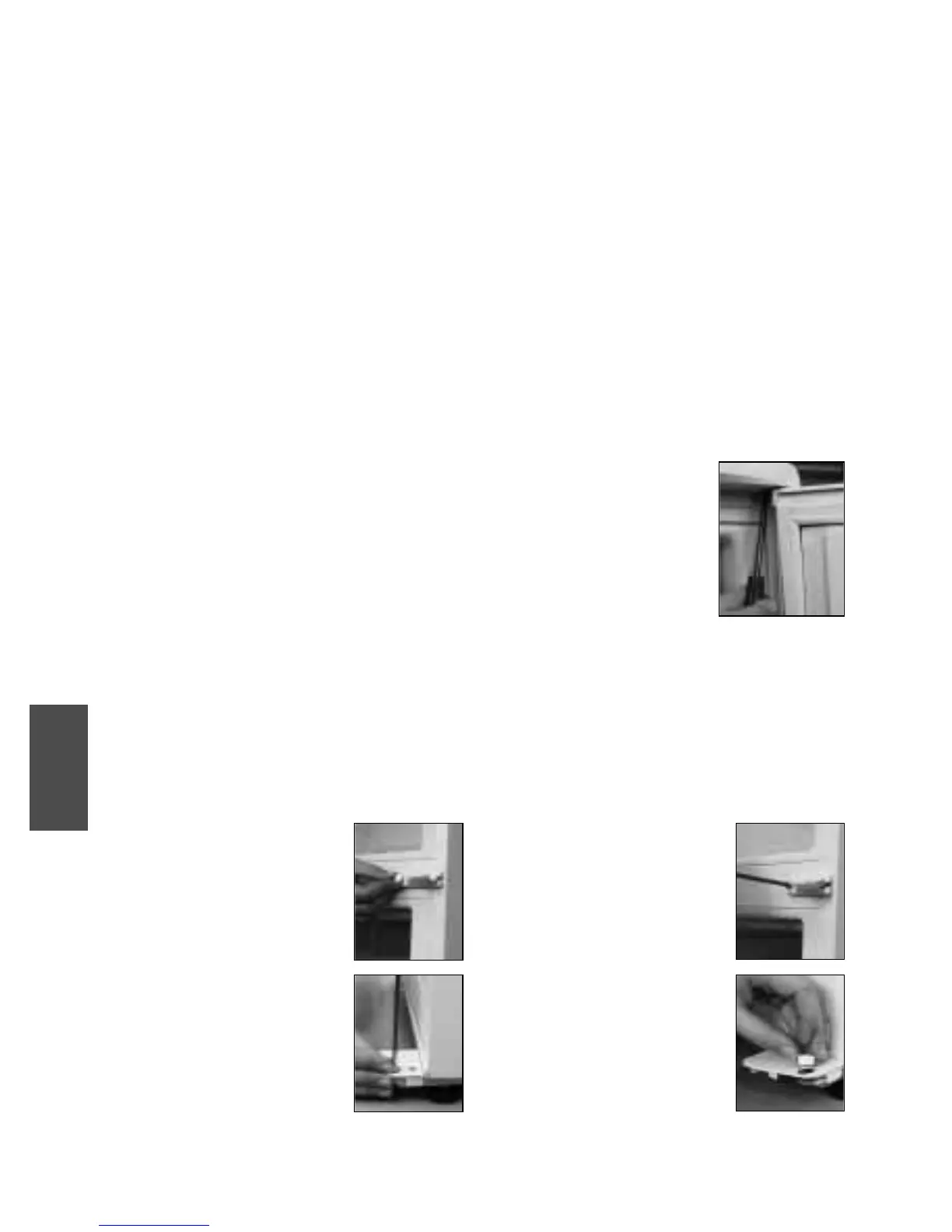 top hinge from the cabinet. Lift the door off the centre hinge.